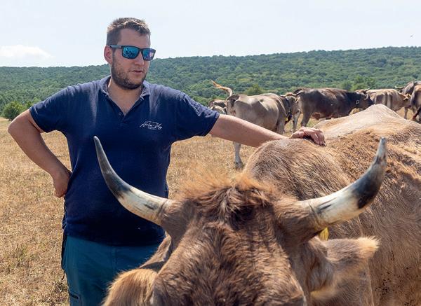 Tudatosan választottuk a kárpáti borzderes fajtát, hét marha büszke tulajdonosaiként. Ezek az állatok nagyon jól tájékozódnak, és okosak, de tízórás kamionos út után, éjszaka érkeztek hozzánk, nem a legjobb idegállapotban. A sötétben a szélrózsa minden irányába elindult egy-egy marha, hiába volt villanypásztor, kerítés, bármi, és ezek az állatok, ha lendületet vesznek, a Bükk másik oldalán állnak csak meg.”