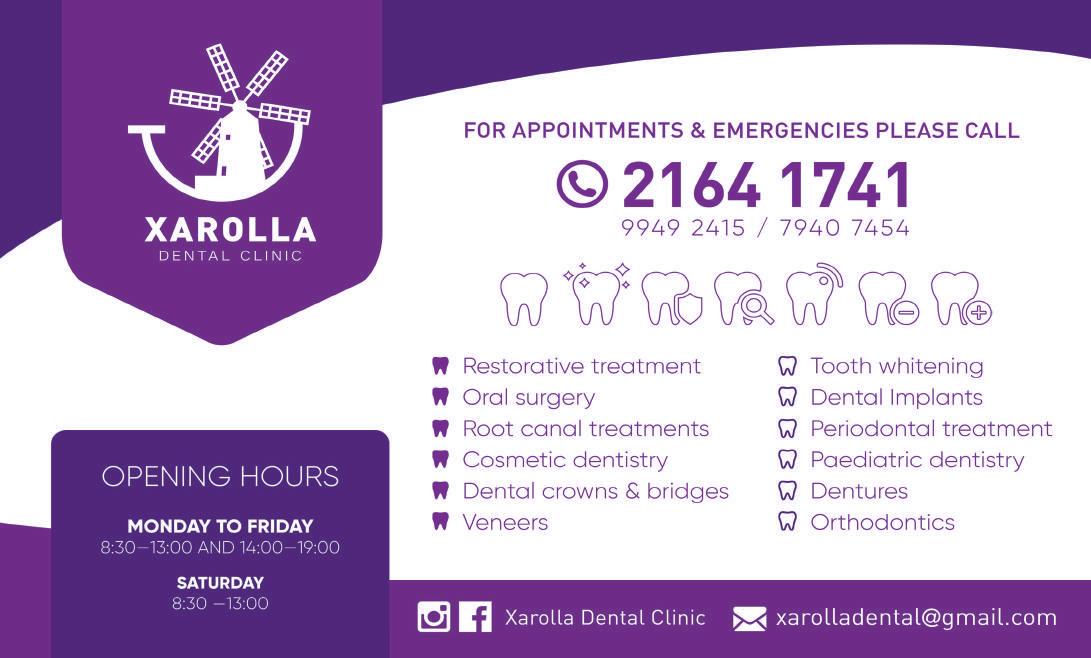 SIĠĠIEWI DENTAL CLINIC 19, Triq Ħal Kbir, is-Siġġiewi (fejn il-bandli Nalizpelra) Tel: 21461682 / 79263220 Dr Daniela Fenech Santucci tawgura l-festa t-tajba lill-parruċċani kollha. Ħinijiet tal-Ftuħ: It-Tnejn, it-Tlieta u l-Erbgħa 08:00-12:00, 15:00-18:00 Il-Ħamis 08:00-12:00 Il-Ġimgħa 08:00-12:00, 15:00-18:00