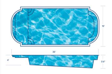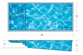 The T40 model is 6" deeper than most of the fiberglass deep end pools on the market, with a shallow end 30% larger than the industry standard. (16 x 36)