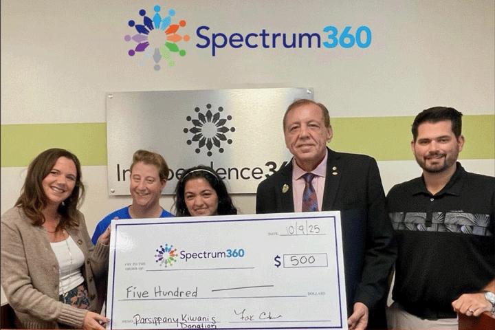 The Kiwanis Club of Greater Parsippany recently donated $500 to Spectrum360, a nonprofit organization dedicated to serving children and adults with autism and related disabilities throughout northern New Jersey.