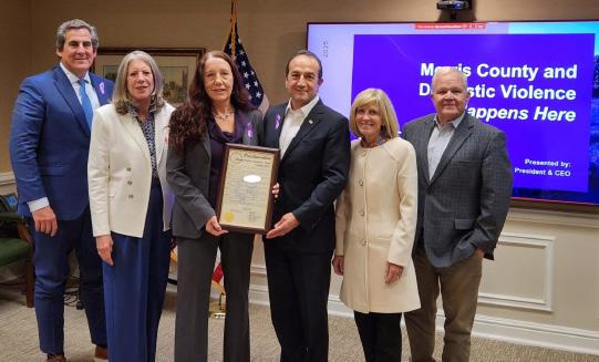 “Domestic violence is not just a private matter. It impacts families, workplaces and entire communities, leaving emotional and physical scars that can last for generations. Here in Morris County, we are proud to partner with JBWS, an agency that has been providing safety, support and solutions for survivors of abuse since 1976,” said Commissioner Director Tayfun Selen, who led the presentation.