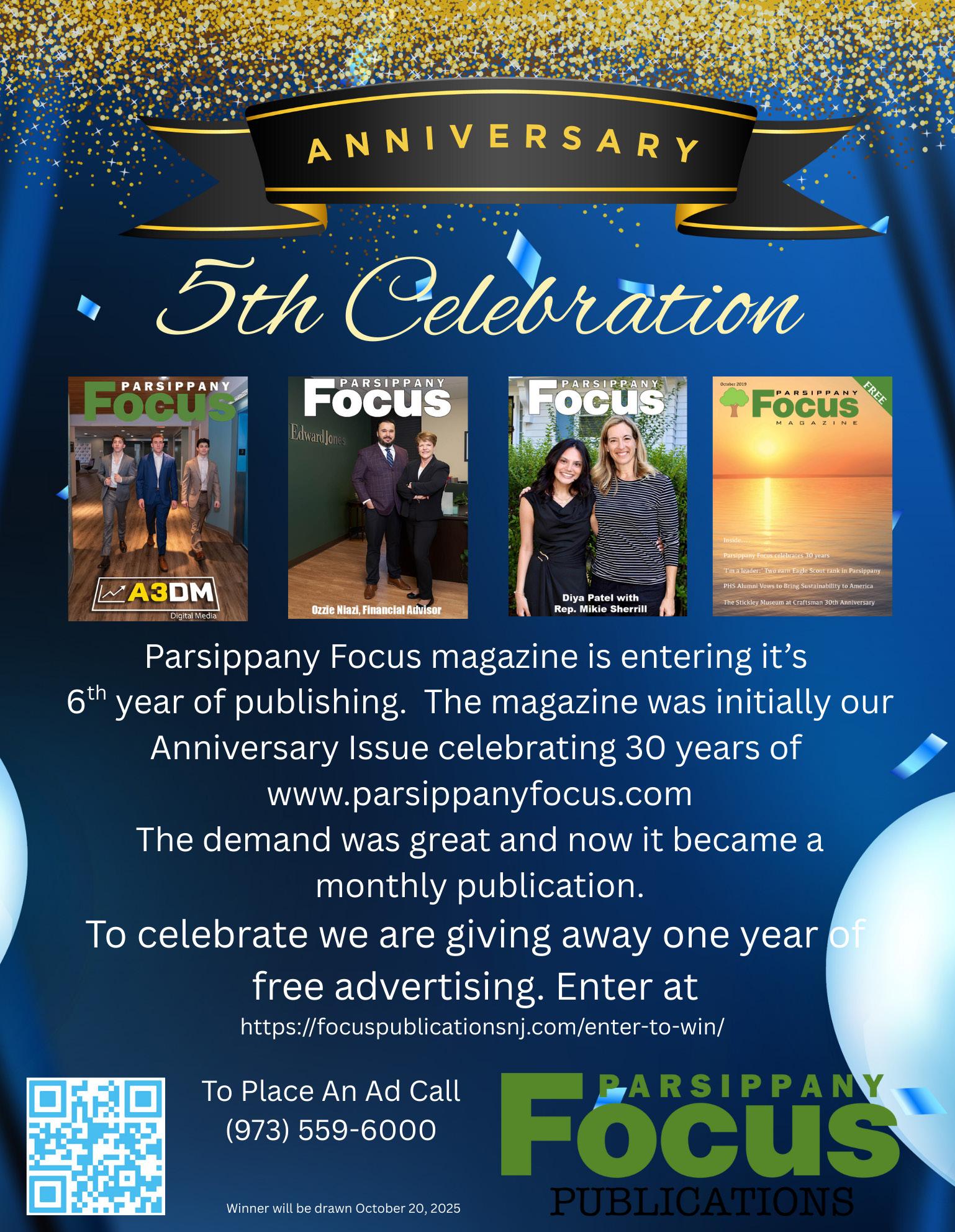 Parsippany Focus Magazine is published monthly by Zoomus Marketing, LLC, 90 East Halsey Road, Suite 304, Parsippany, New Jersey 07054