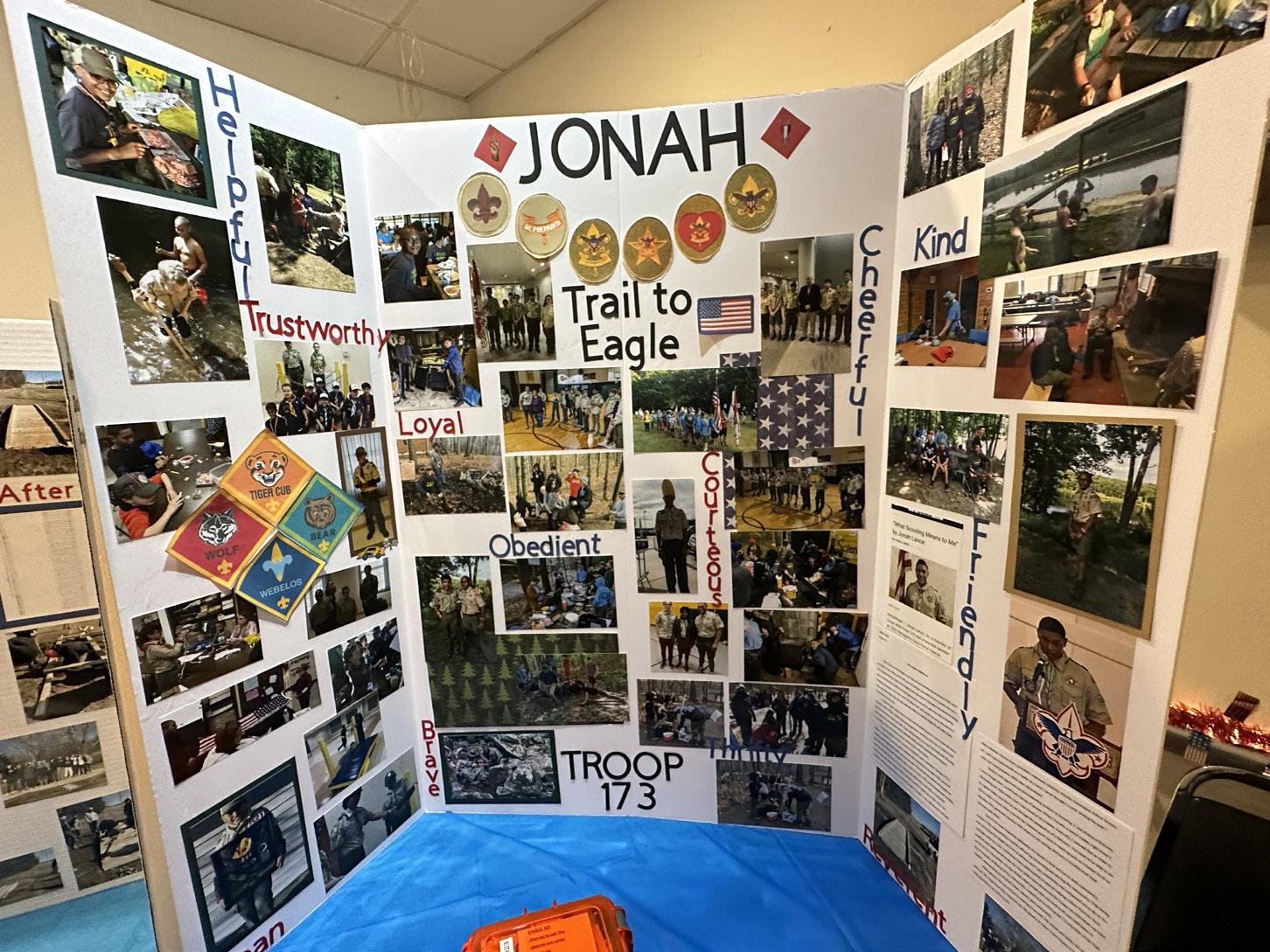 Jonah began his Scouting career 2011 as a Cub Scout in Pack 218. With his mother as his Den leader, he earned each Cub Scout Rank and the Arrow of Light Award before crossing over to Troop 173 in February 2016. As he settled into the Troop, he enjoyed attending monthly campouts, learning new skills, participating in community service projects, and being around other Scouts who inspired him to be the best Scout he could be. Progressing through Scouting, Jonah was elected for his first position of responsibility, Quartermaster. He worked hard keeping track of the Troop’s equipment and preparing the equipment for campouts. He then became Patrol Leader, Assistant Senior Patrol Leader, and Scribe.