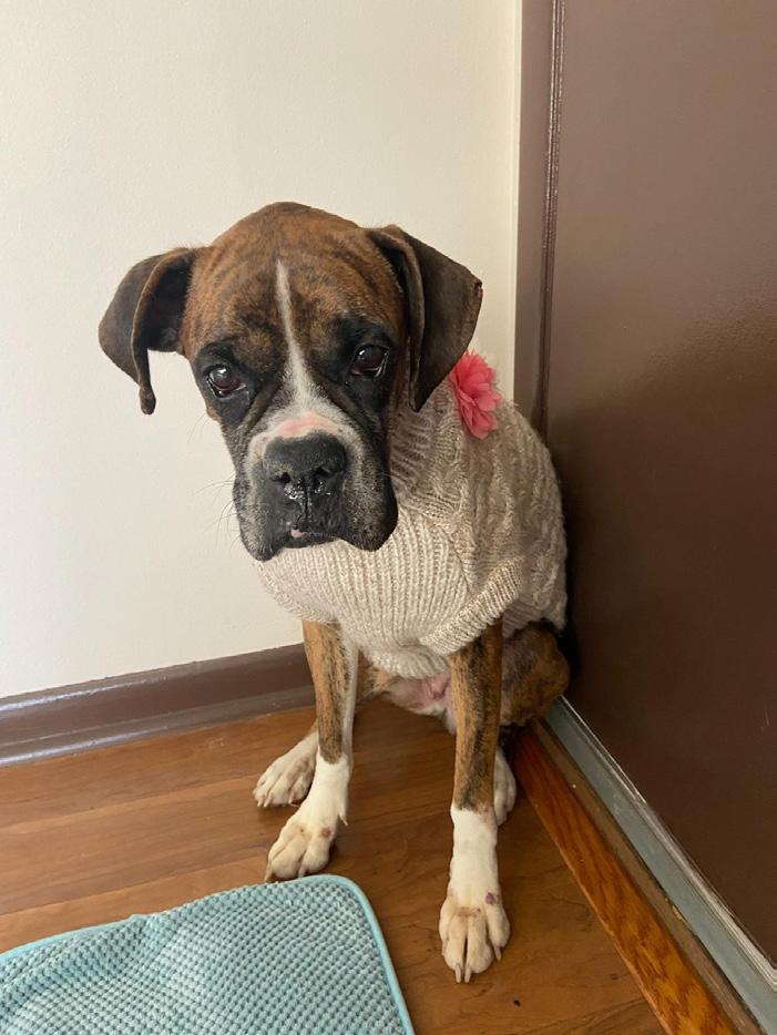 Ali, a 2-year-old female Boxer, had endured a challenging start to life. Raised in a puppy mill solely for breeding purposes, her existence was deemed disposable once she no longer served the mill’s profit-