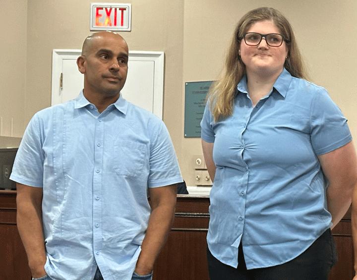 At the Parsippany-Troy Hills Council meeting on Tuesday, July 23, Emily was honored by Mayor James Barberio, along with Parsippany resident Louis Roman, for their heroic actions that saved the life of a basketball player who had gone into cardiac arrest at the PAL. While the emergency responders were en route, Ms. Fales and Mr. Roman performed CPR and used an AED to resuscitate the player, Marvin Johnson. Mr. Johnson was present as Mayor Barberio and Chief of Police Pantina presented certificates and civilian service medals. “I am so proud of Emily Fales and Louis Roman,” declared Mayor Barberio. “Hearing how these two