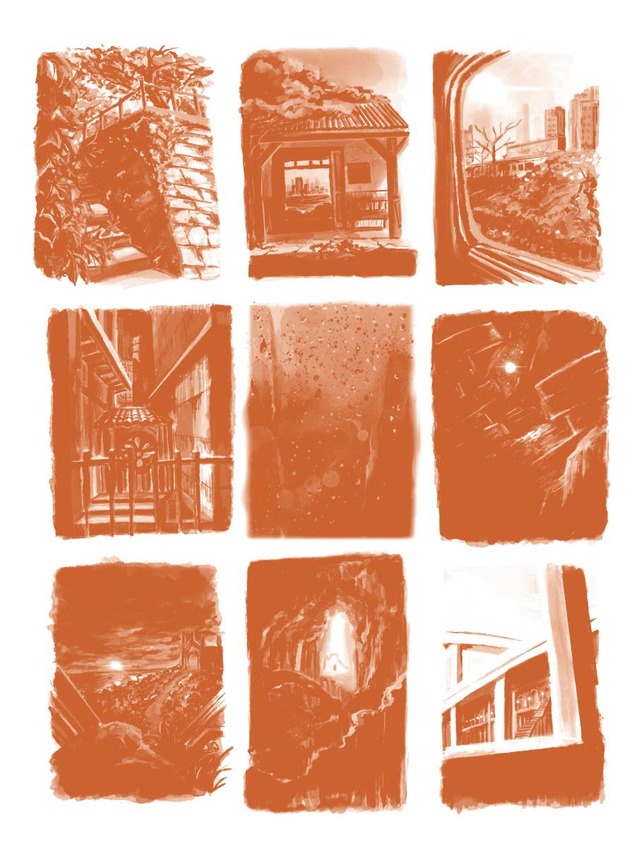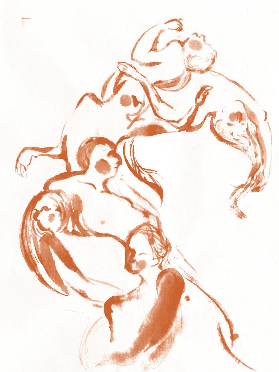 She saw it in flashes; holding wrists, light blue veins beneath skin; light glowing through orange curtains; the pressure of a hand held in hers; the cold air of winter piquing her tongue. A kiss in the hollow of her ear where her neck met her jaw, snow building on a fire escape, the back of a neck, a human shape before her in the darkness; the salt of a tear that was not her own. The heat of summer and the susurration of dry grasses; a river at night, light shining white on undulating waves; stepping over puddles clogged with leaves and onto sidewalks, rain pulling goosebumps from her skin.