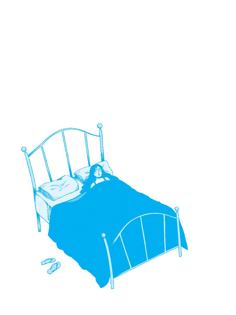 And now I can't get up— Head submerged between comforter and bed. Where I can't find comfort, I'll find dreams instead.