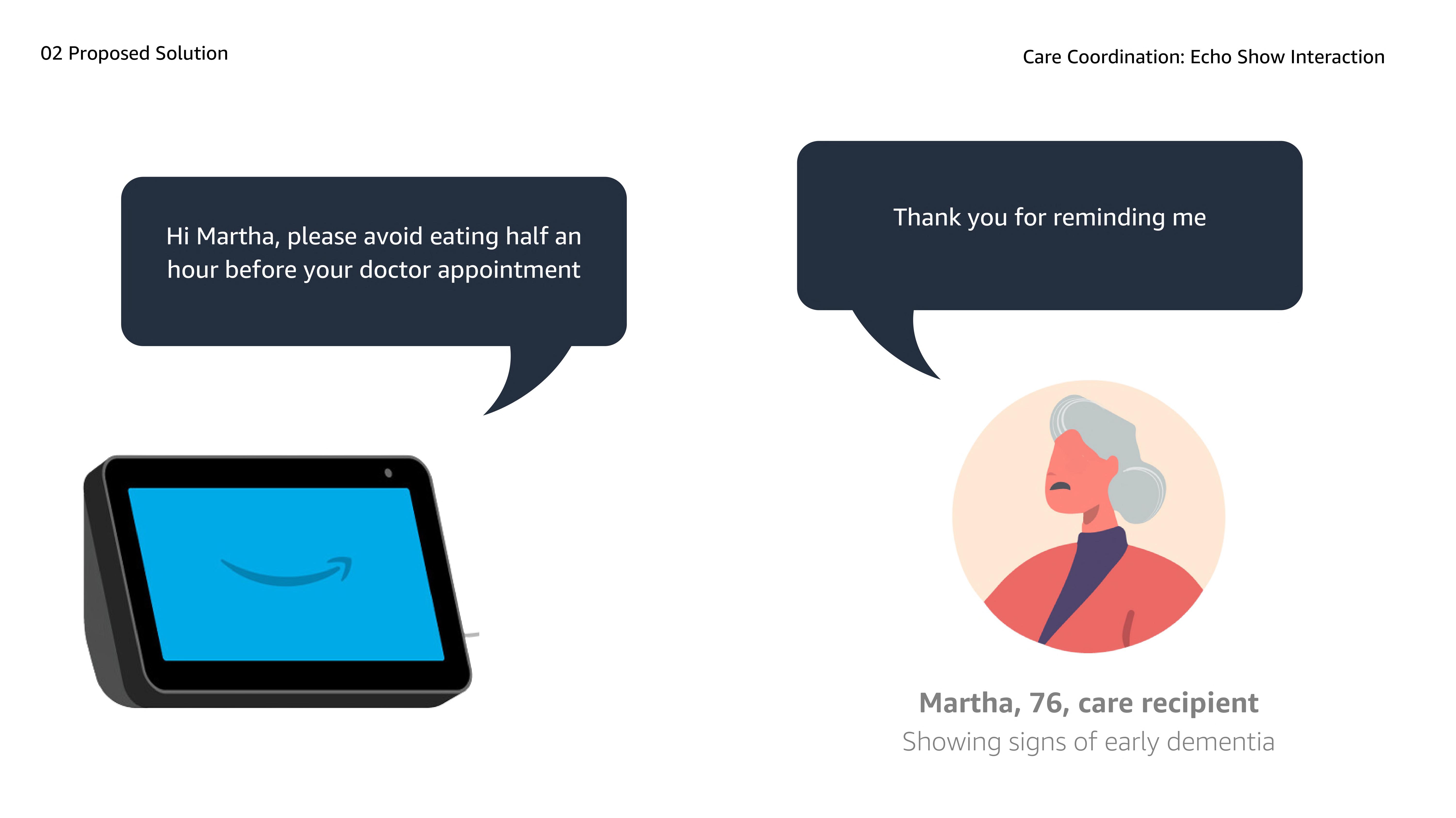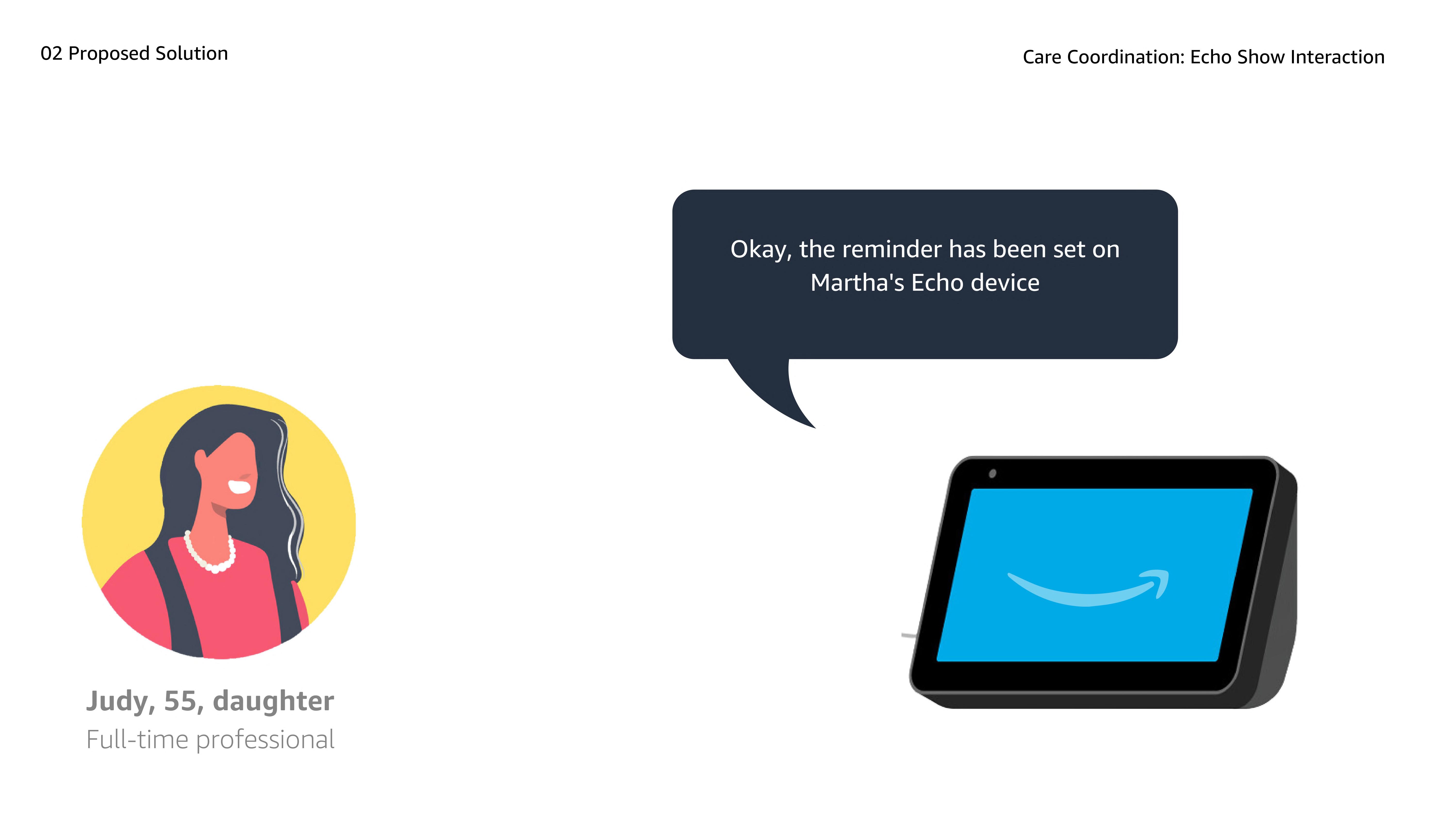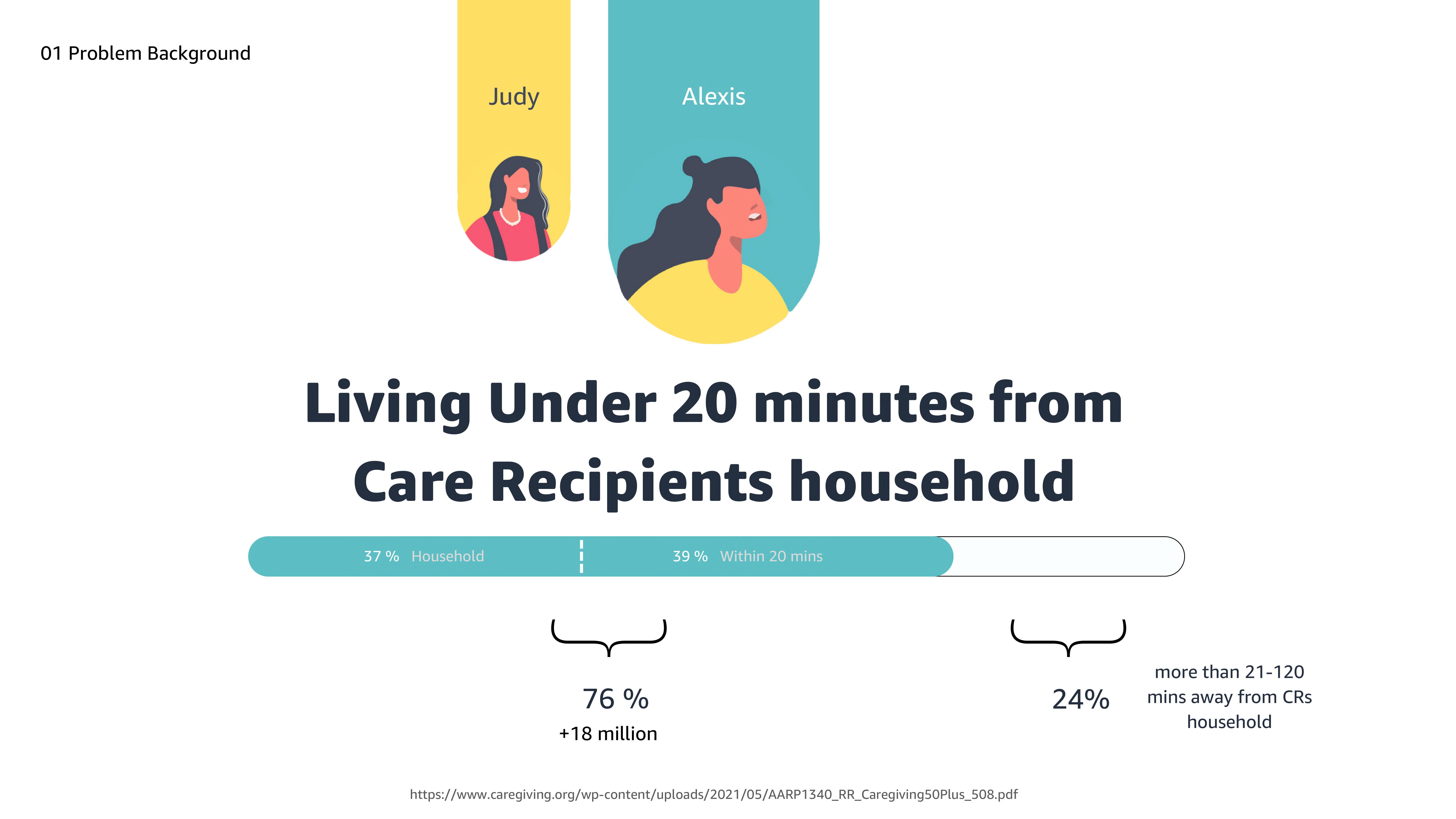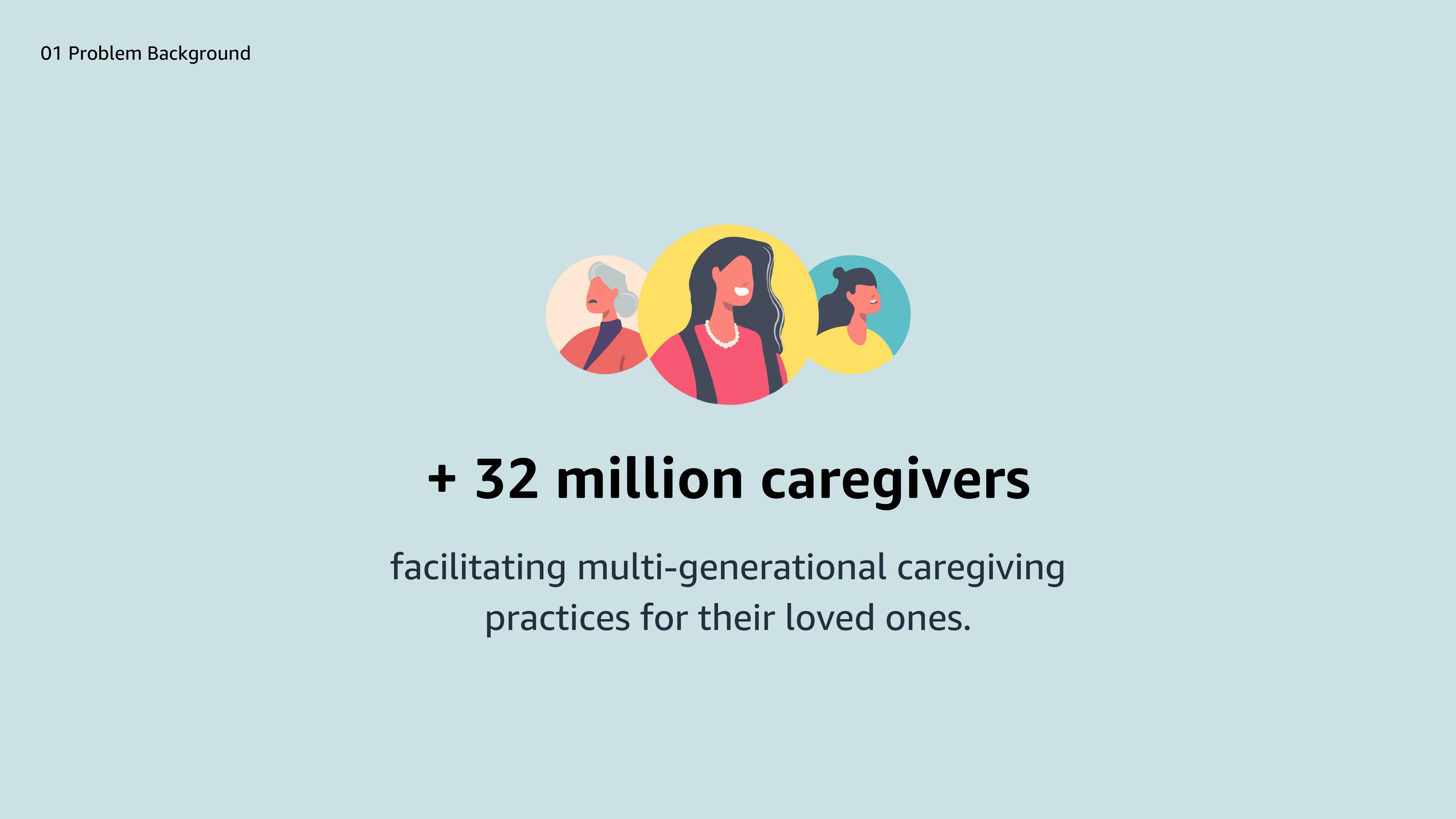 While initially targeting care recipients living alone, we identified an emerging living configuration that could benefit from collaborative caregiving. By promoting shared responsibilities, caregivers in multi-generational families can care for themselves while delivering better care to the care recipient. With 24/7 urgent response and remote assistance, Amazon empowers caregivers, revolutionizing ageing alongside technology at home.