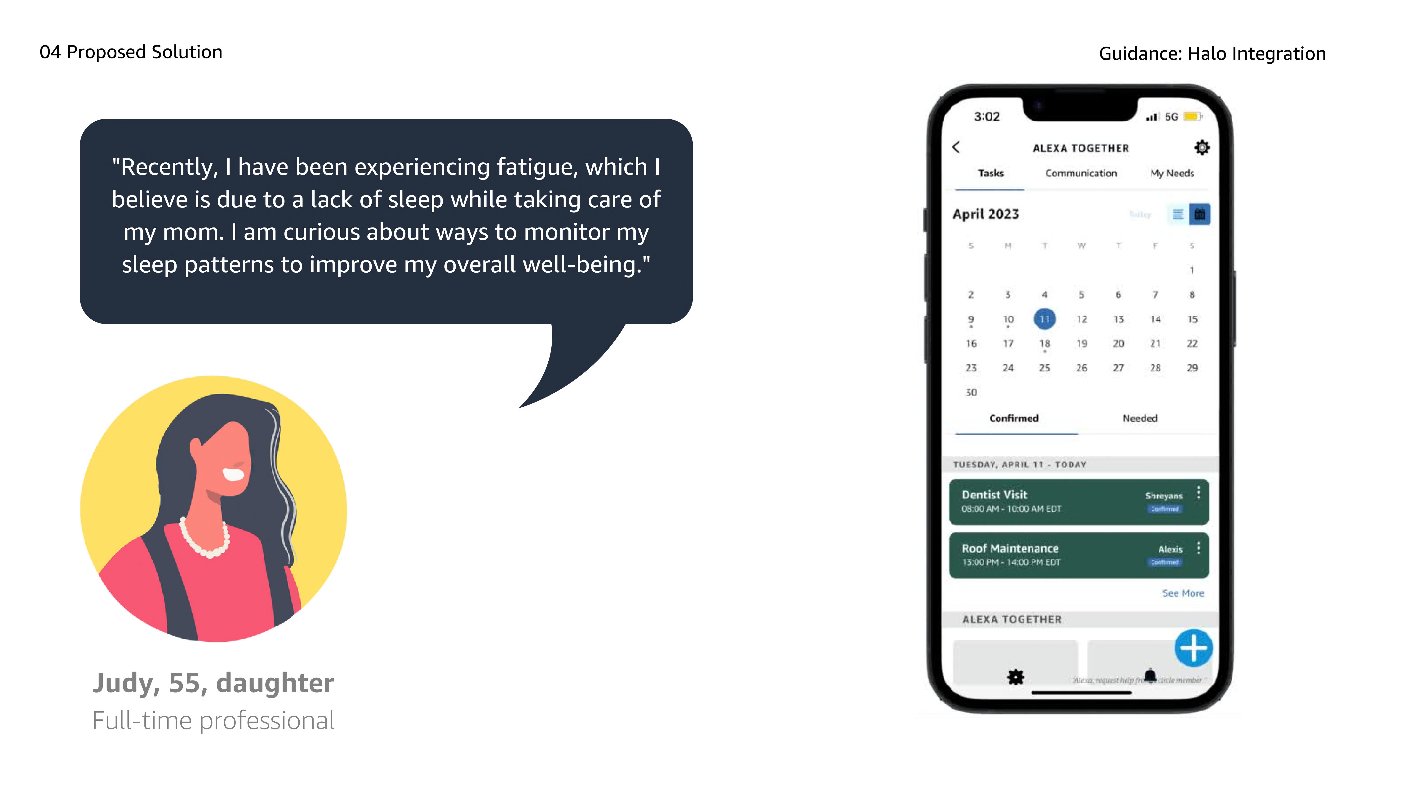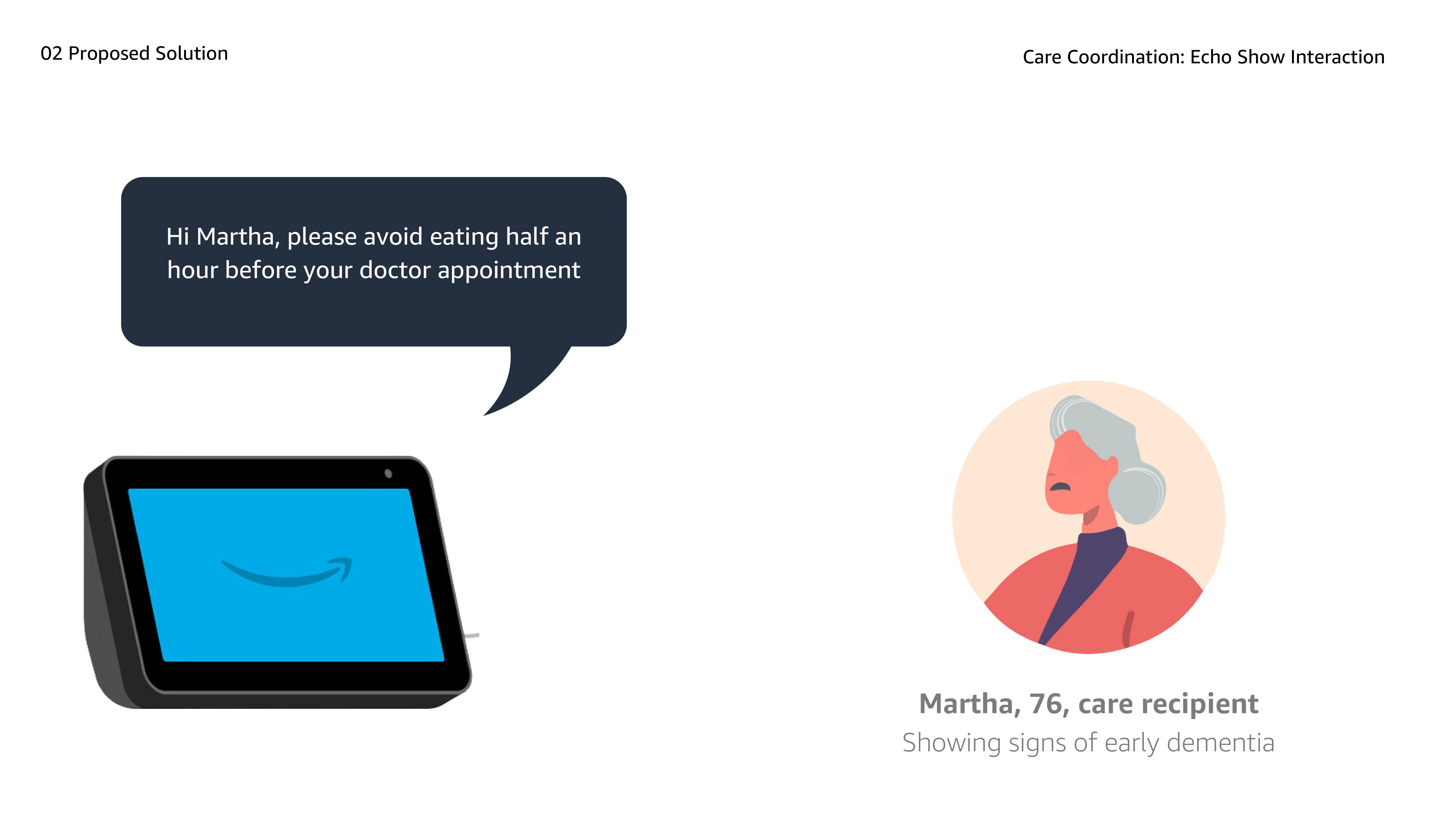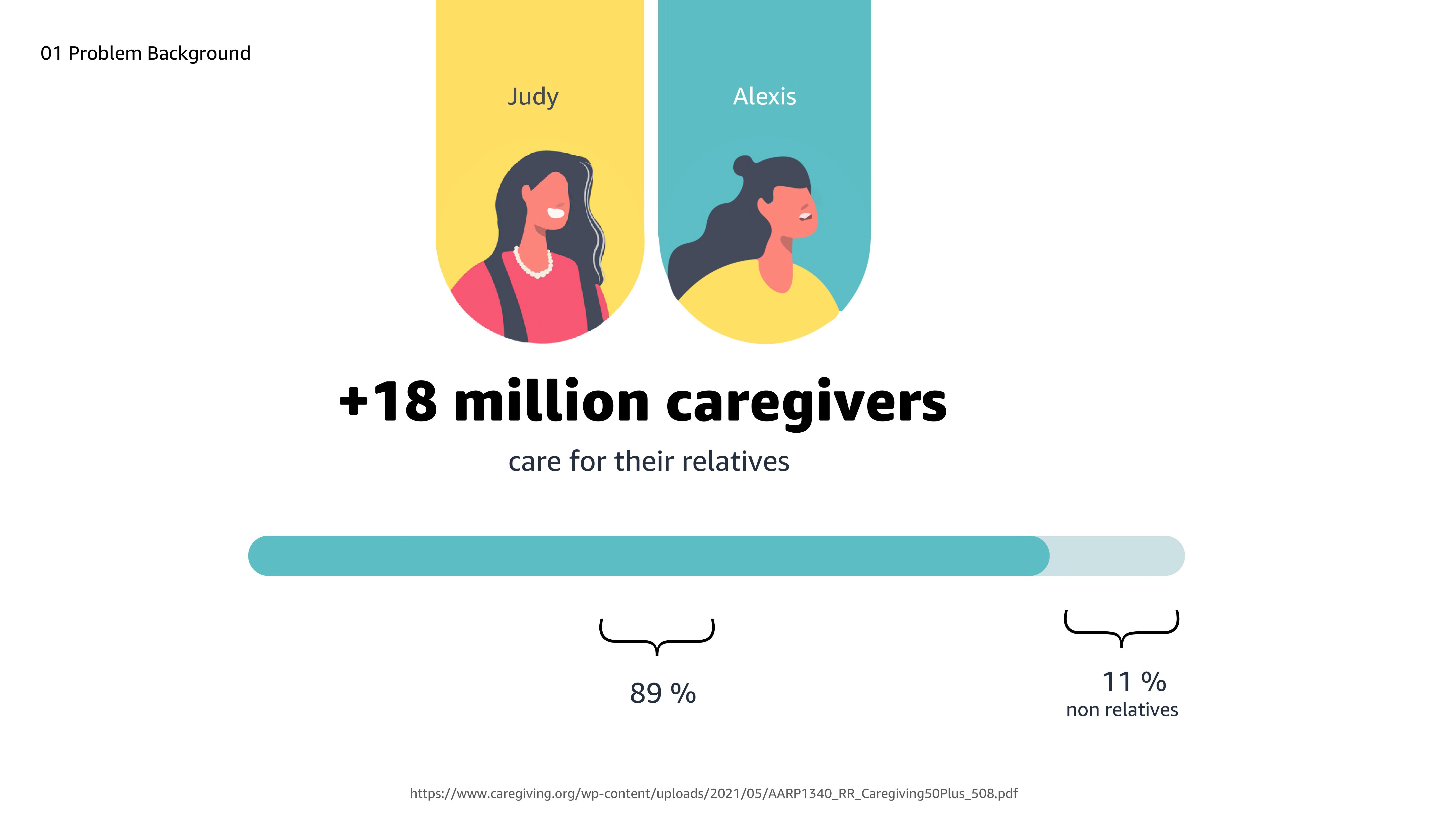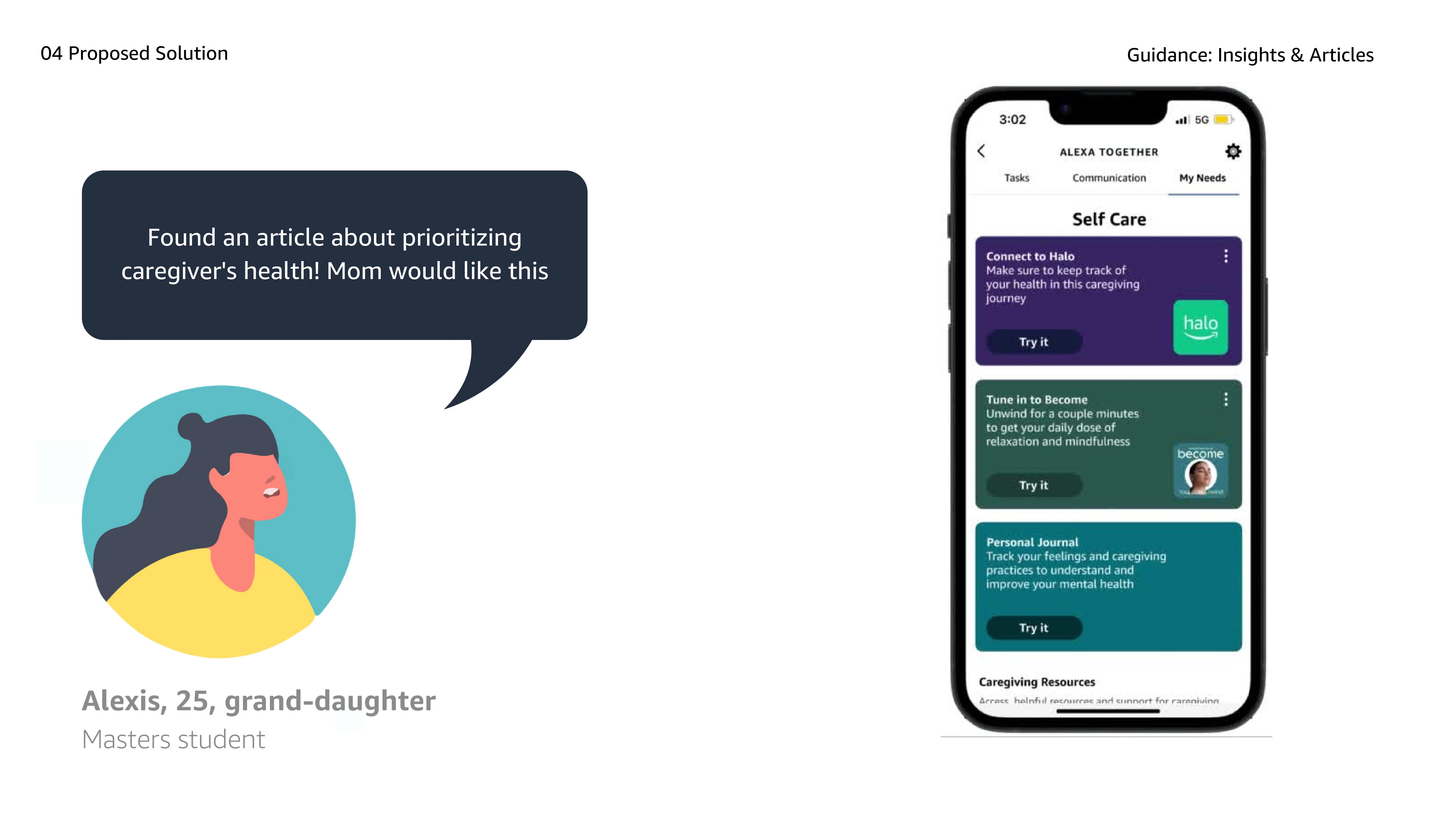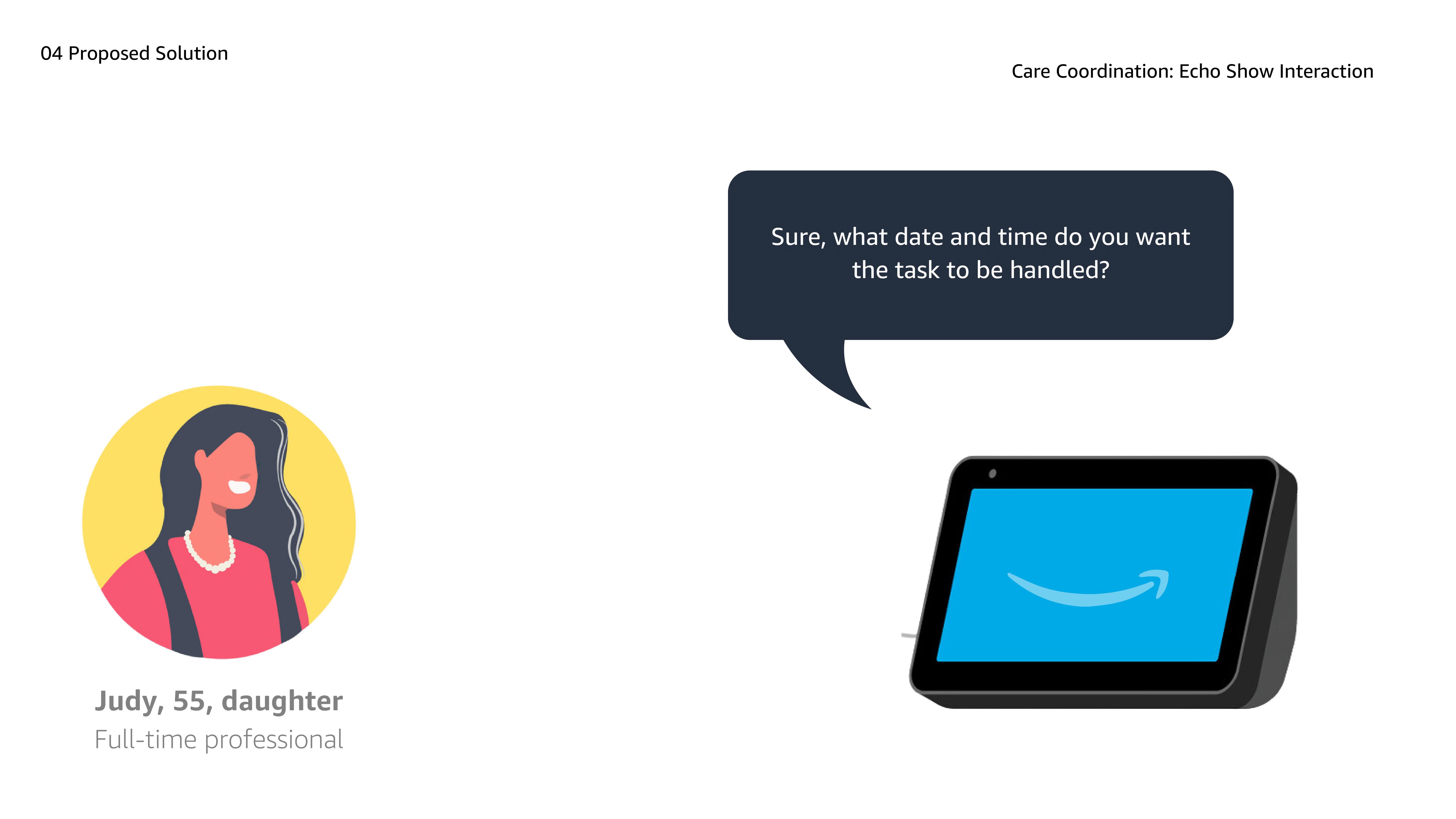 While initially targeting care recipients living alone, we identified an emerging living configuration that could benefit from collaborative caregiving. By promoting shared responsibilities, caregivers in multi-generational families can care for themselves while delivering better care to the care recipient. With 24/7 urgent response and remote assistance, Amazon empowers caregivers, revolutionizing ageing alongside technology at home.