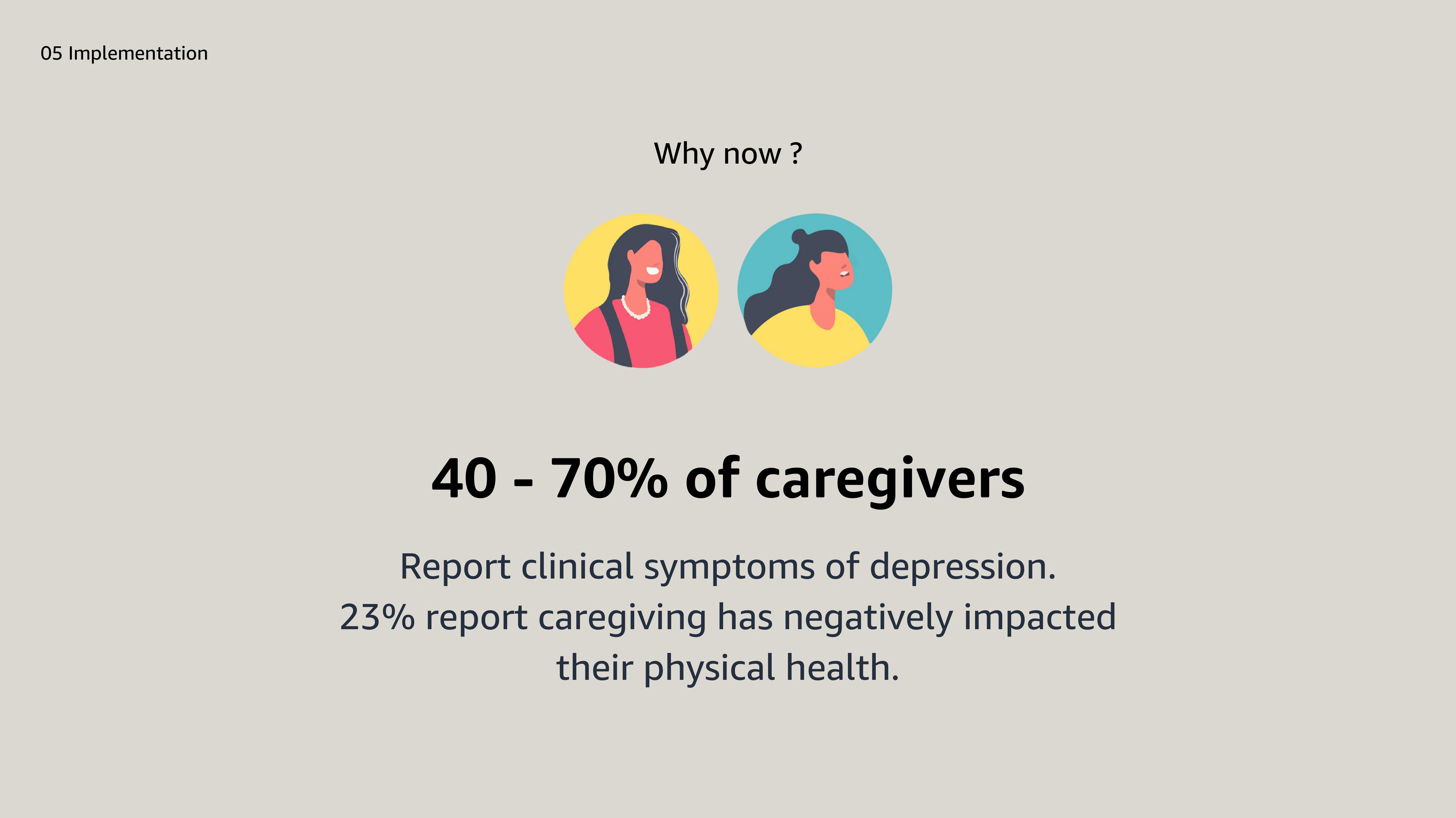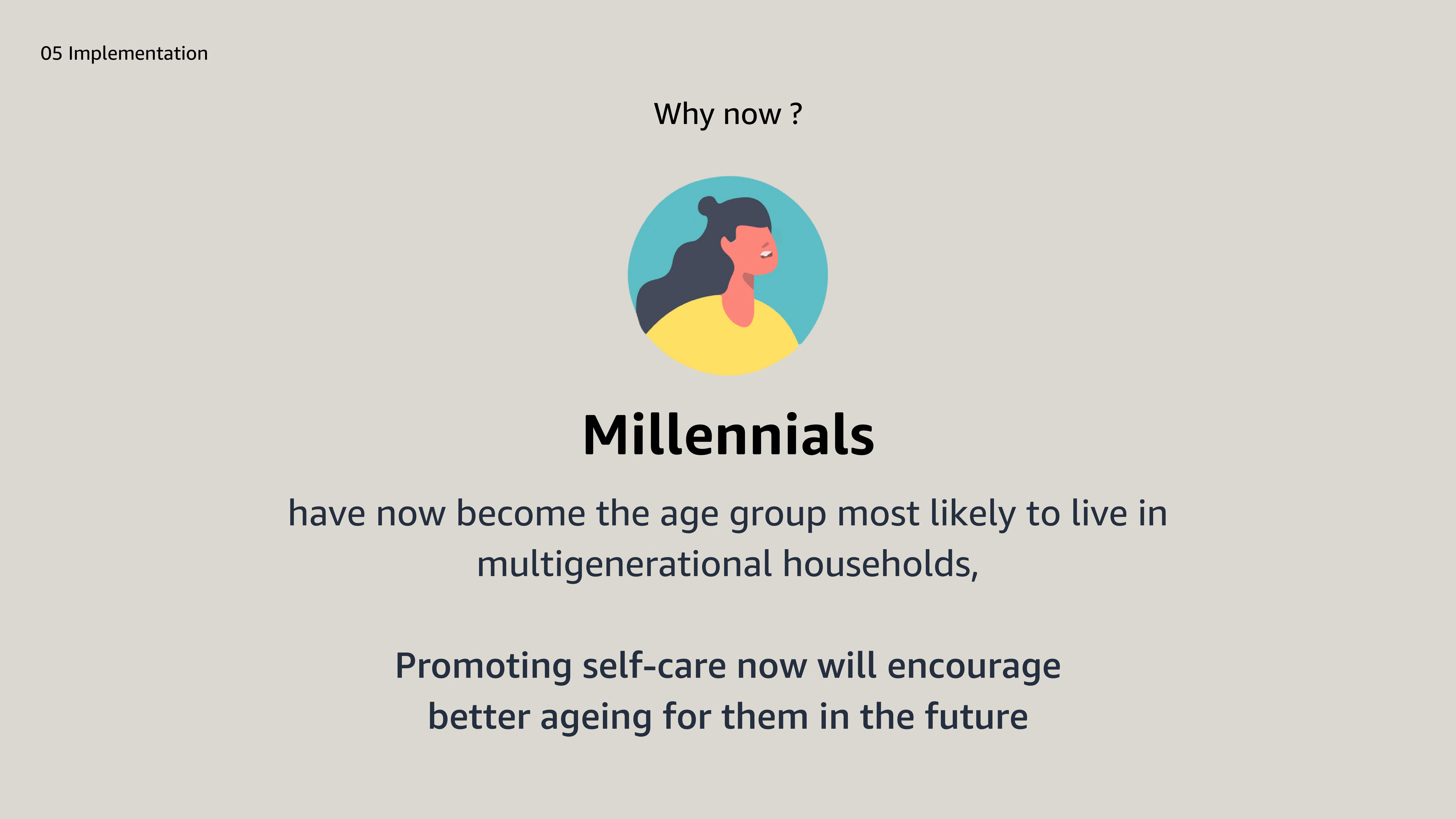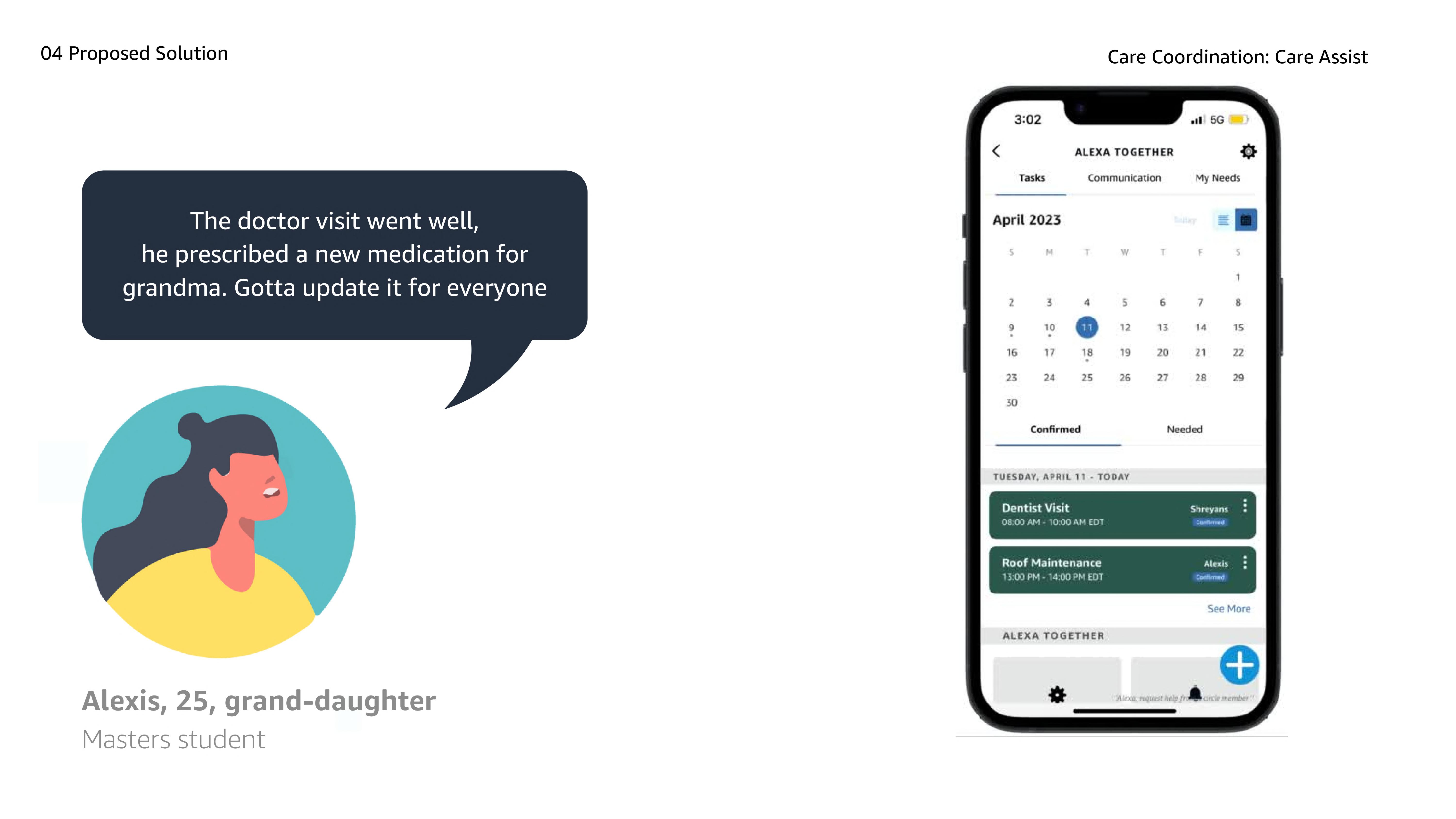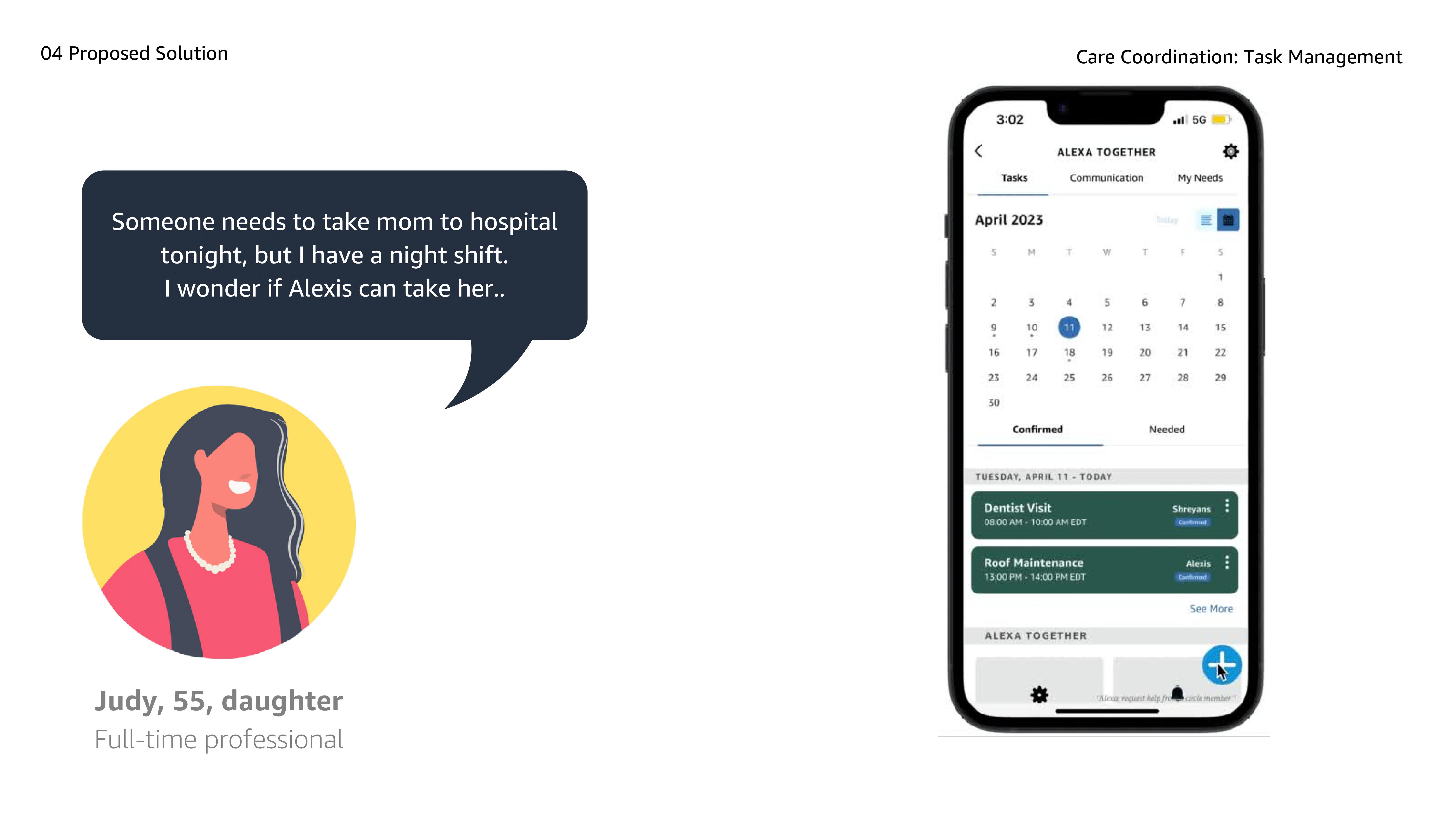 While initially targeting care recipients living alone, we identified an emerging living configuration that could benefit from collaborative caregiving. By promoting shared responsibilities, caregivers in multi-generational families can care for themselves while delivering better care to the care recipient. With 24/7 urgent response and remote assistance, Amazon empowers caregivers, revolutionizing ageing alongside technology at home.