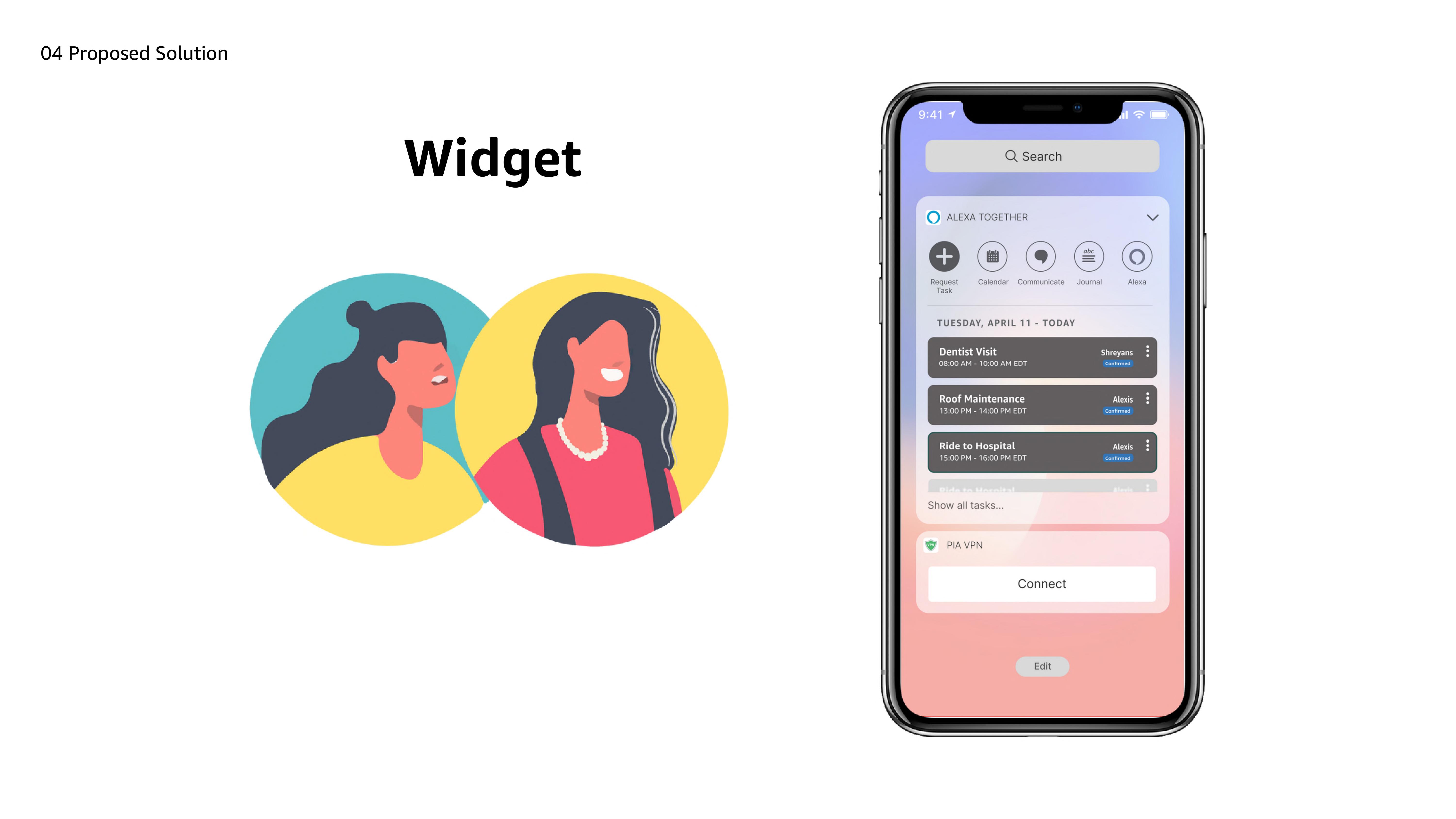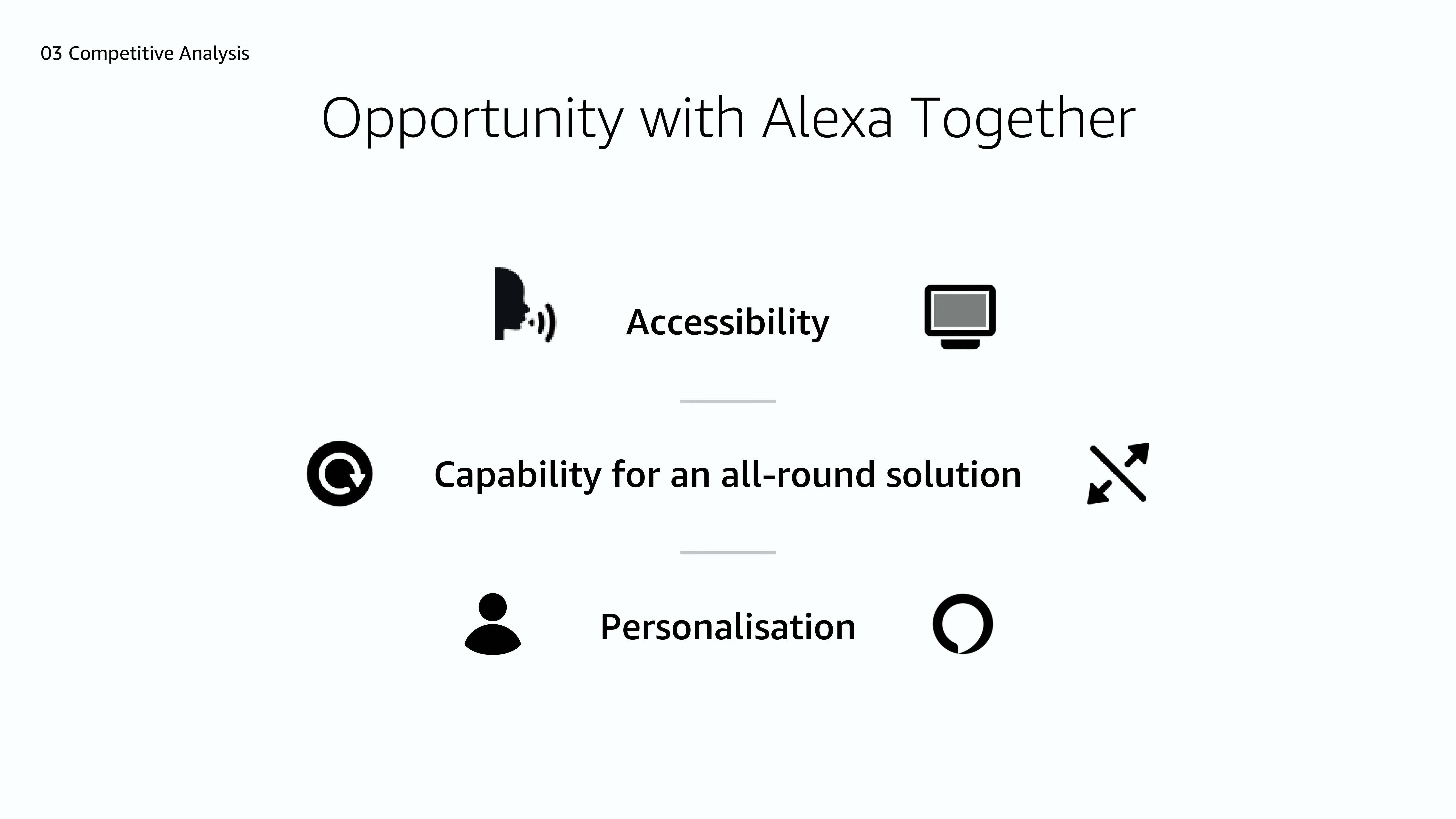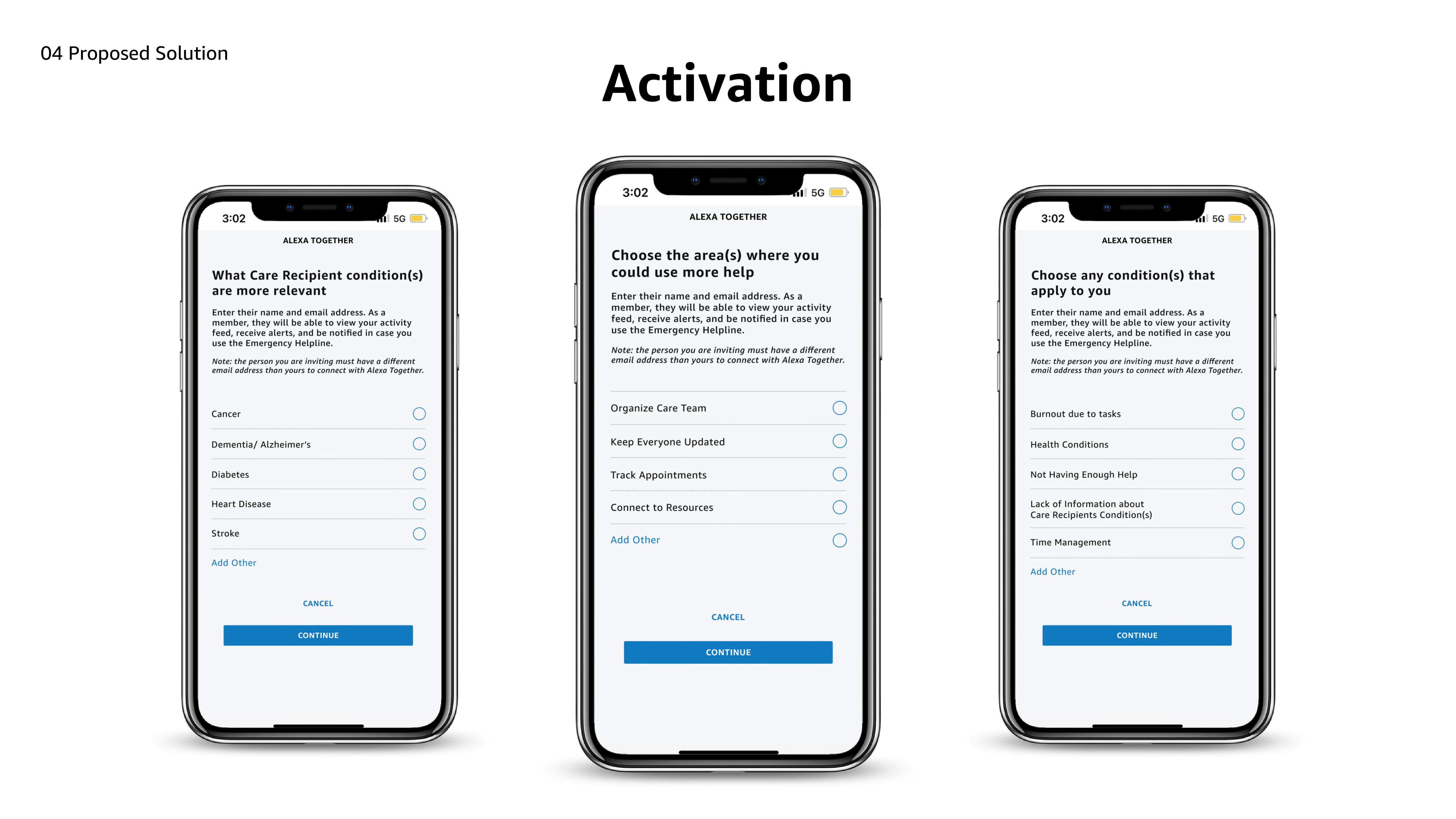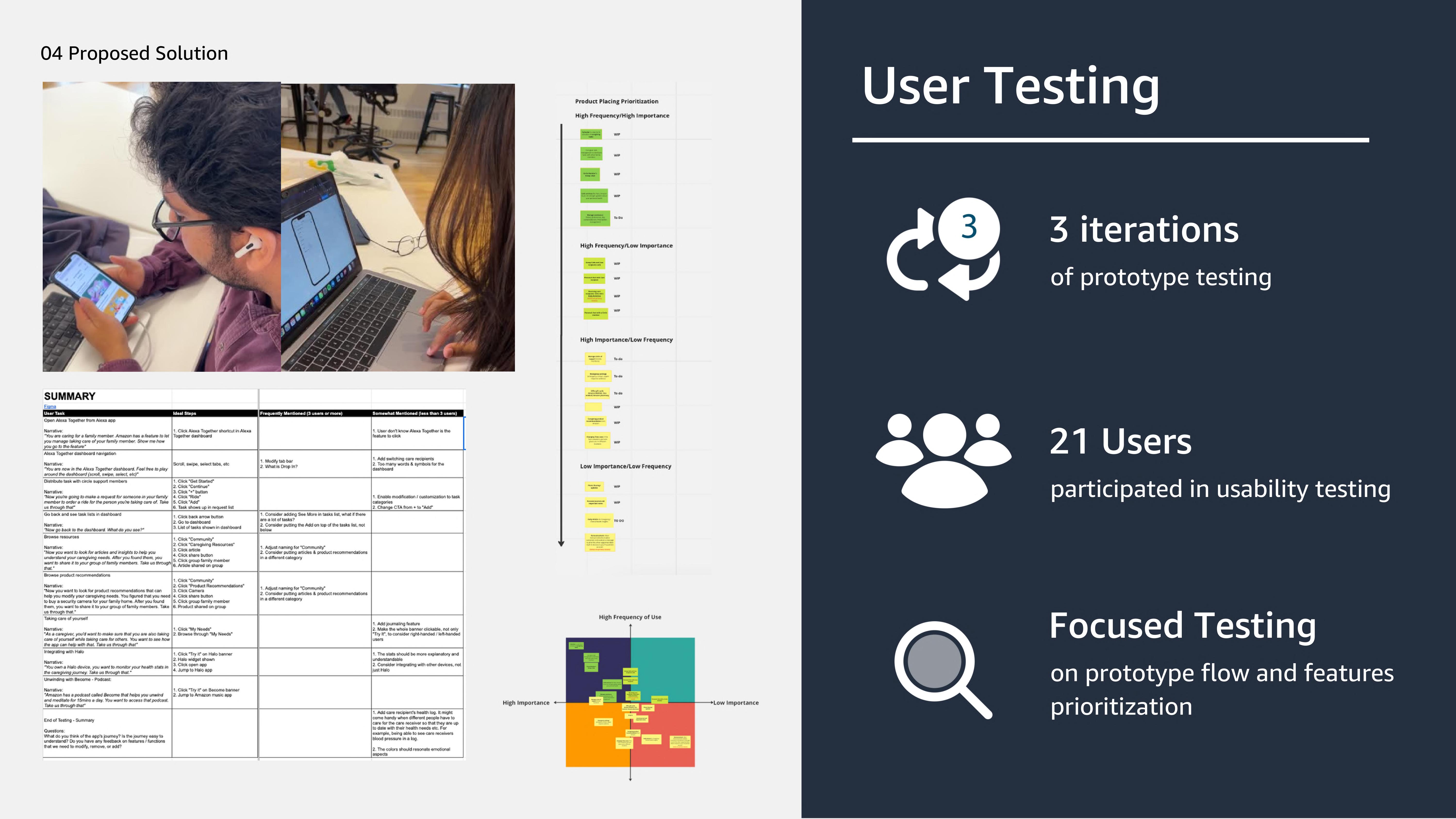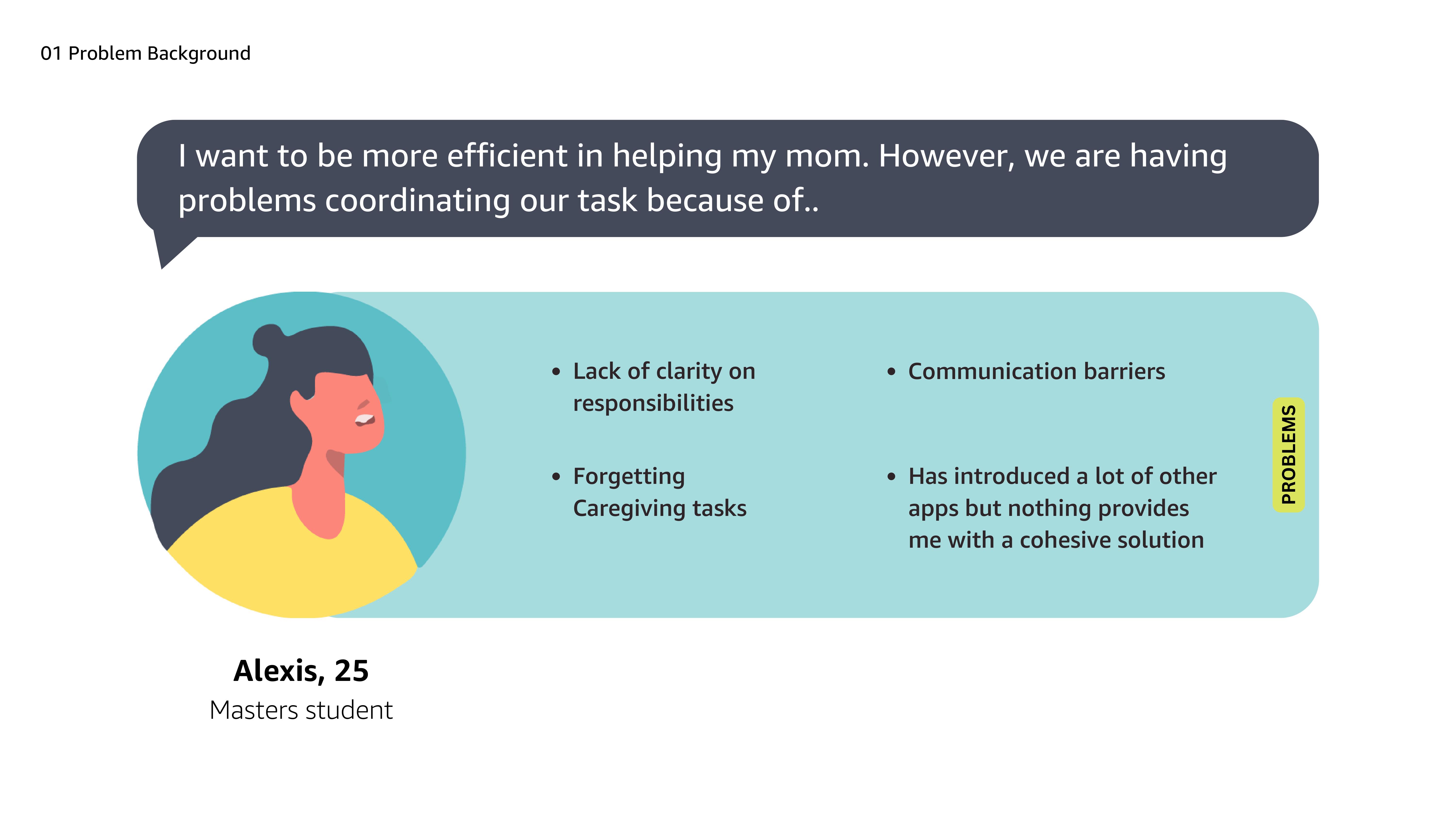 While initially targeting care recipients living alone, we identified an emerging living configuration that could benefit from collaborative caregiving. By promoting shared responsibilities, caregivers in multi-generational families can care for themselves while delivering better care to the care recipient. With 24/7 urgent response and remote assistance, Amazon empowers caregivers, revolutionizing ageing alongside technology at home.