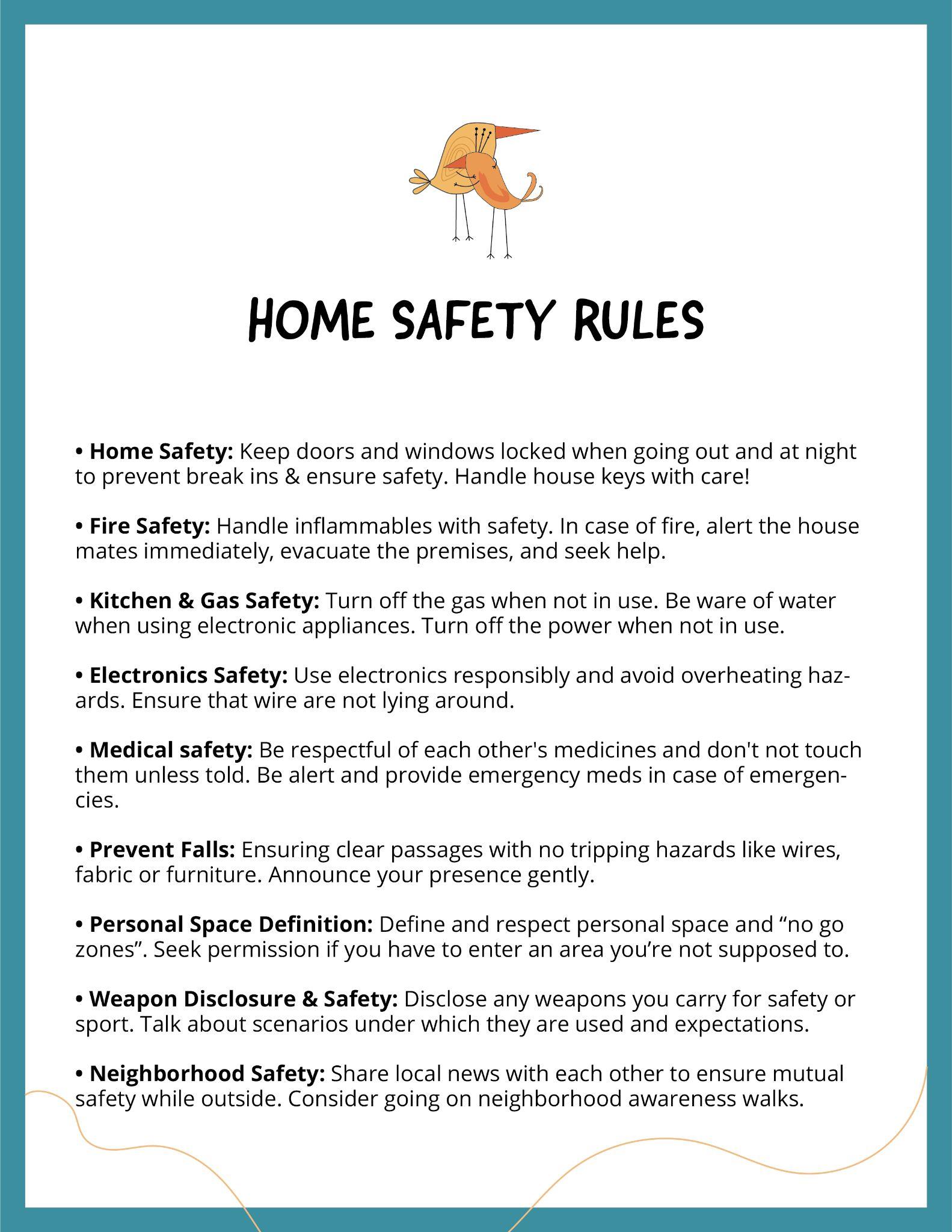 WHAT: A printable sheet that contains ground rule to ensure home safety- individually & collectively.