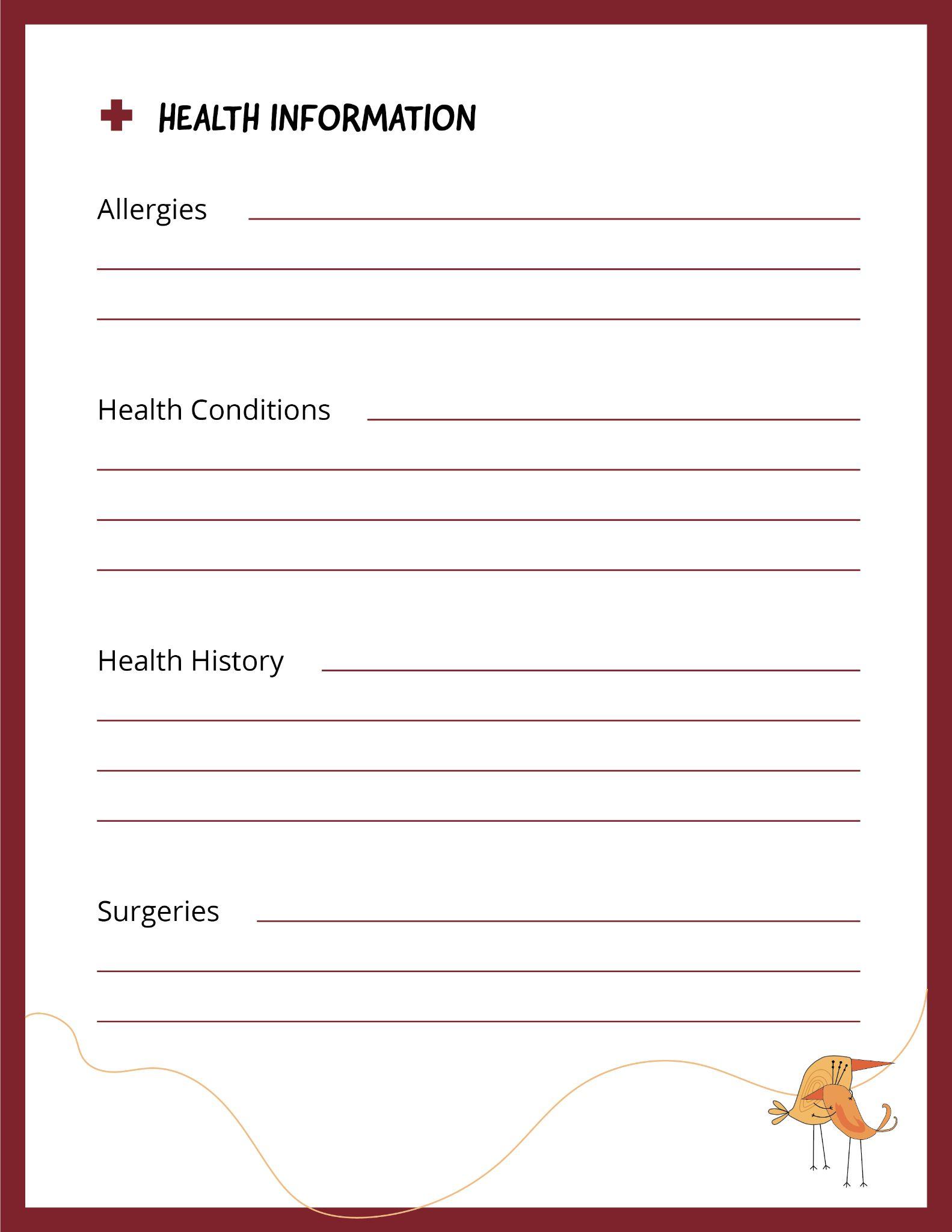 WHAT: A small book containing contact details of people to reach out to in case of an emergency related to the participant