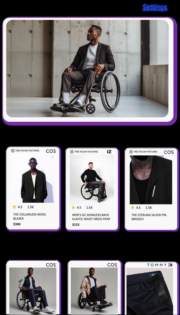 AI will map disability needbased prompts to adaptive fashion keywords/filters.