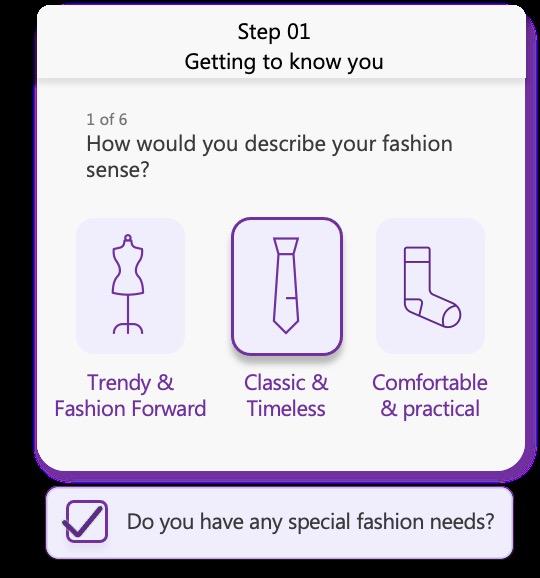 A personalized shopping profile system simplifies searches by letting users specify fashion preferences and special needs.