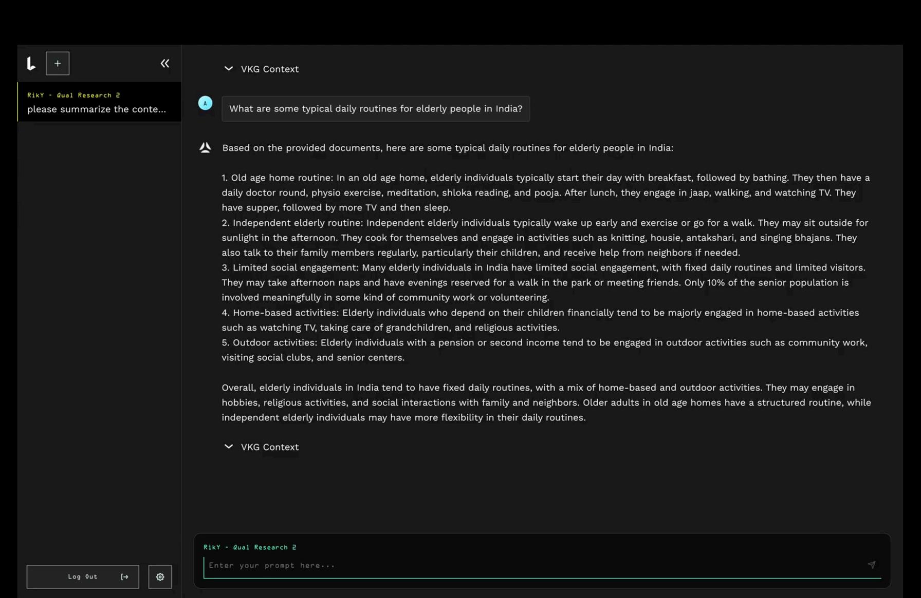 We use a RAG framework coupled with our LLM to reference the uploaded files to answer your queries.