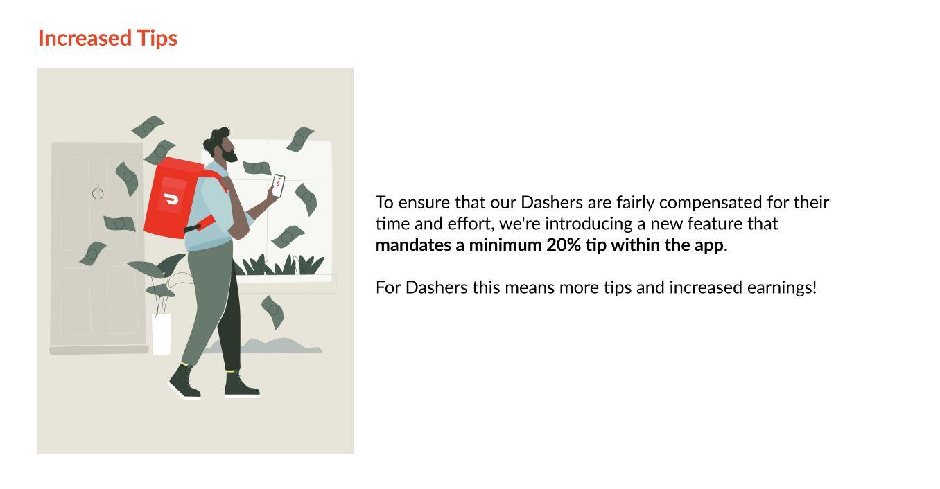 Customer tips are a major chunk of the Dasher earnings. When customers do not tip, Dashers tend to not accept those orders. We hope a mandated tip will resolve this problem.