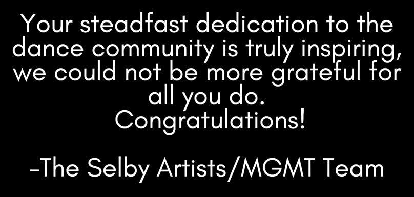 Selby Artists Management and Selby zing exceptional talent, she has worked harp, Mikhail Baryshnikov, Mark Morris, current roster is comprised of some of uding Alonzo King LINES Ballet, Ballets Dancers, Complexions Contemporary ergio Bernal Dance Company, and Turn It Out With Tiler Peck & Friends. Her extensive experience supporting performances and touring throughout the world makes her a valued partner for artists and presenters alike.