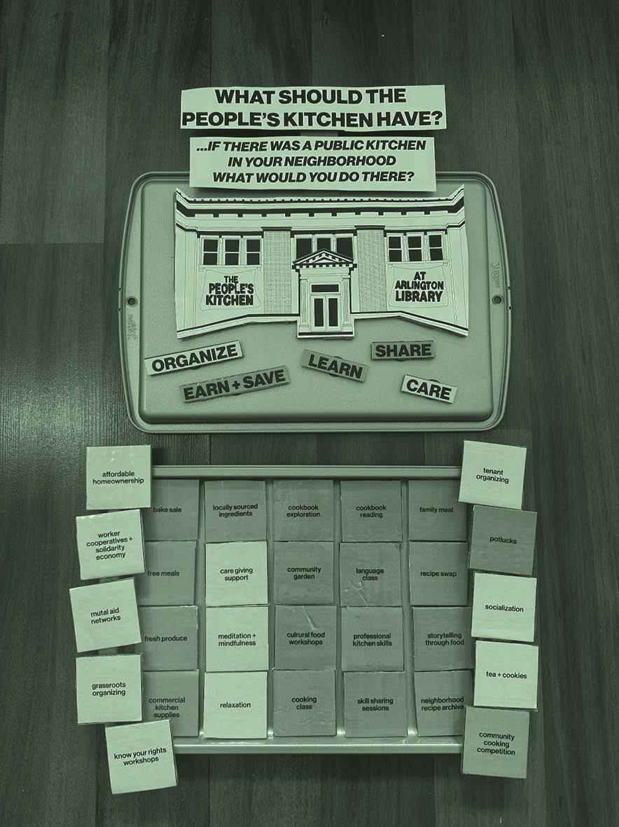 Situating the People’s Kitchen within the Arlington Library, a trusted community resource, expands the library’s already prefigurative role.