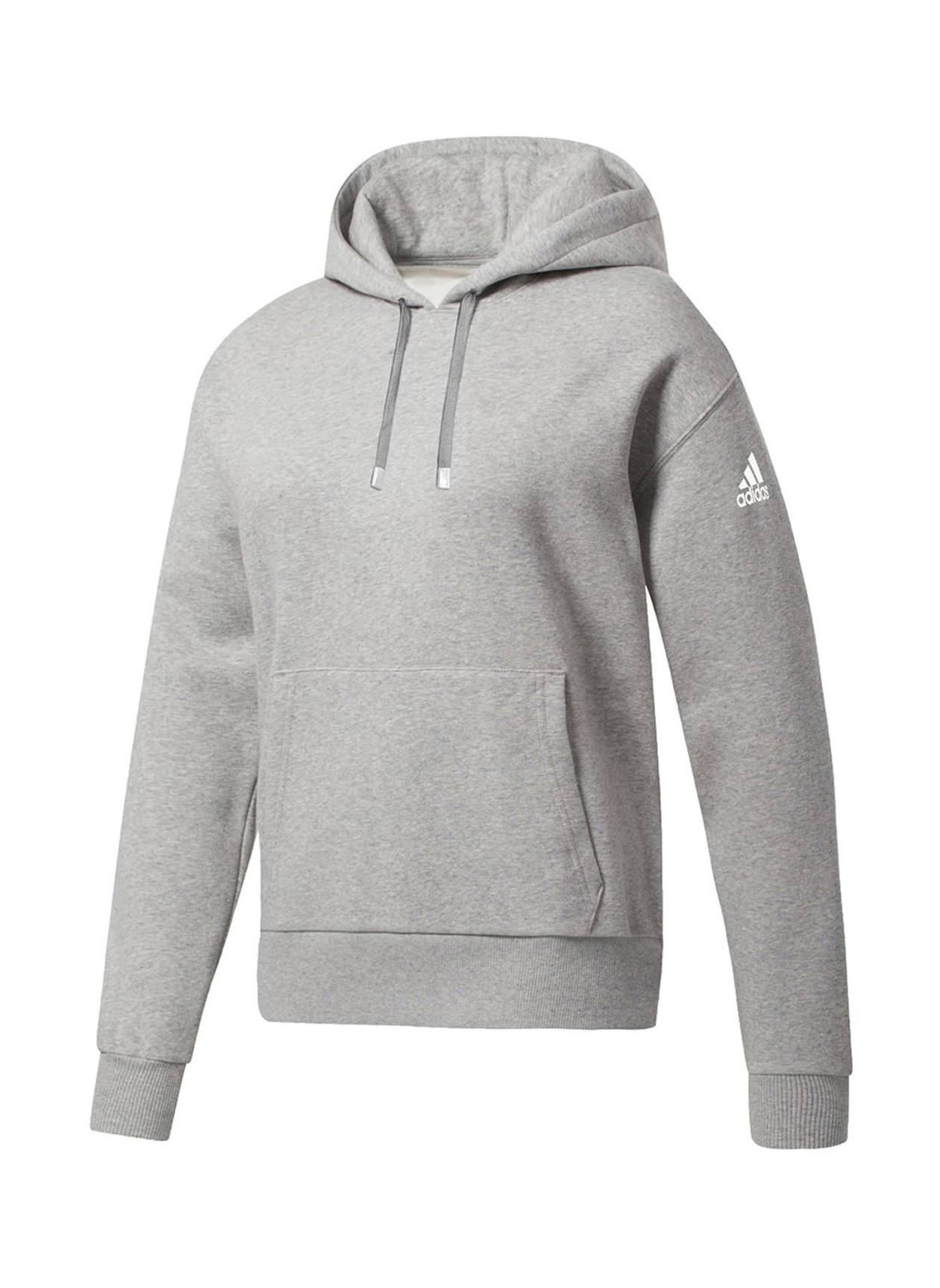 ADIDAS WOMEN'S MEDIUM GREY HEATHER / WHITE FLEECE HOODIE
