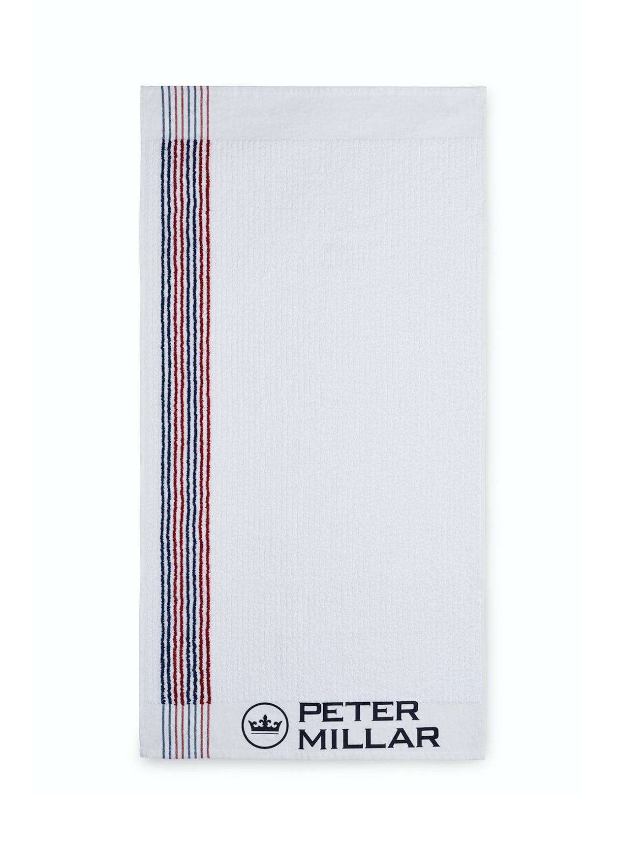 Gain direct access to beter inventory for custom Peter Millar golf. The customizable Peter Millar Tour Caddy Towel is a must-have for any golfer's bag. Made from coton, this Peter Millar towel is soft and absorbent. Wipe down your clubs after a long day on the course. The classic stripe design and Peter Millar logo add a touch of style. The carabiner clip makes it easy to atach your towel to your golf bag. Whether you're a pro or an amateur, the Tour Caddy Towel is a great way to keep your clubs clean and dry while also showcasing your company logo.