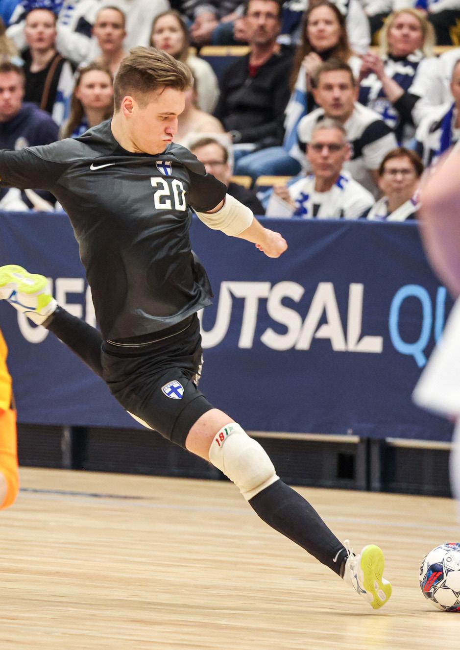 Kannen kuva: Kasper Kangas laukoo. Kuvapankki, Suomen Palloliitto