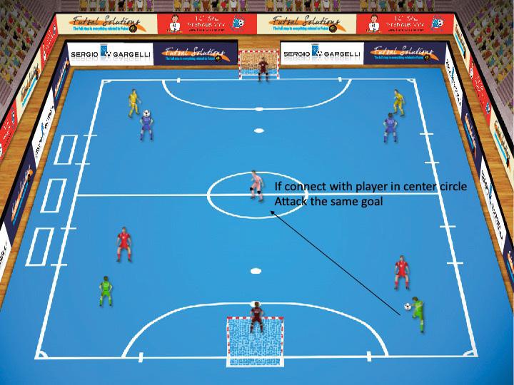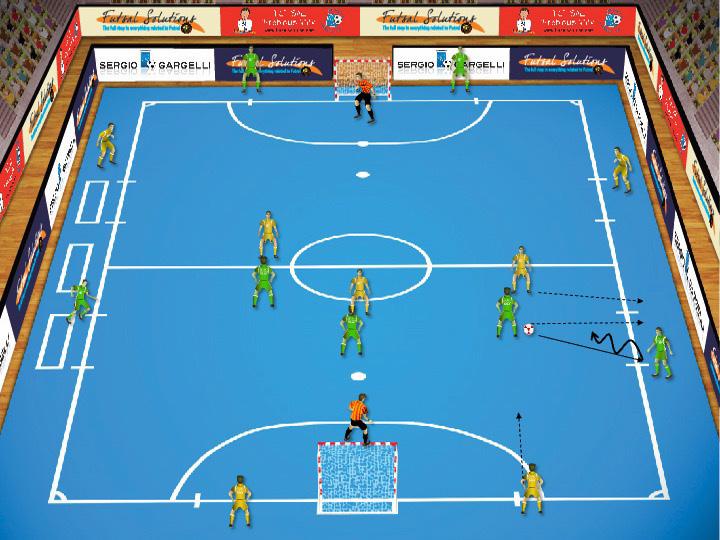 - Futsal combinations like hide one-two, diagonal, cortina & parabolic entrance, to exploit the long side of penalty area