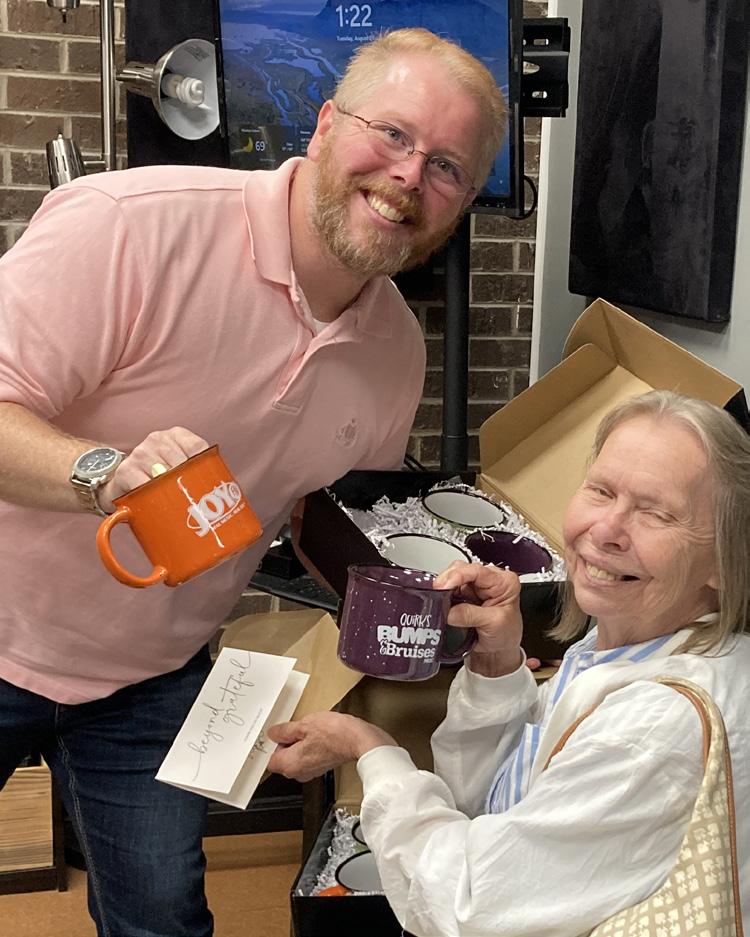 This is Jason Goss and his mom, Diane. They came down to tour the station and have lunch with everyone. They also enjoyed the mugs we gifted them. They are the sweetest people!!!!