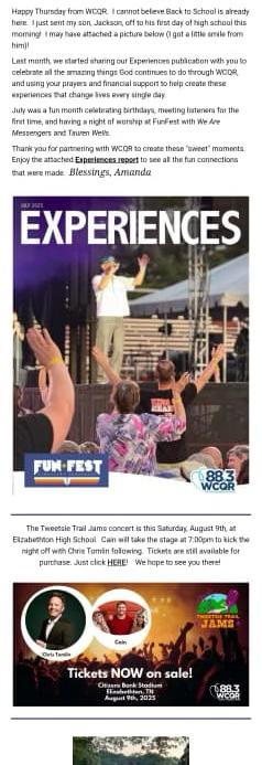 WCQR joined the City of Elizabethon and over 4,000 people for an amazing night of worship at the 2025 Tweetsie Trail Jams with CAIN and Chris Tomlin!