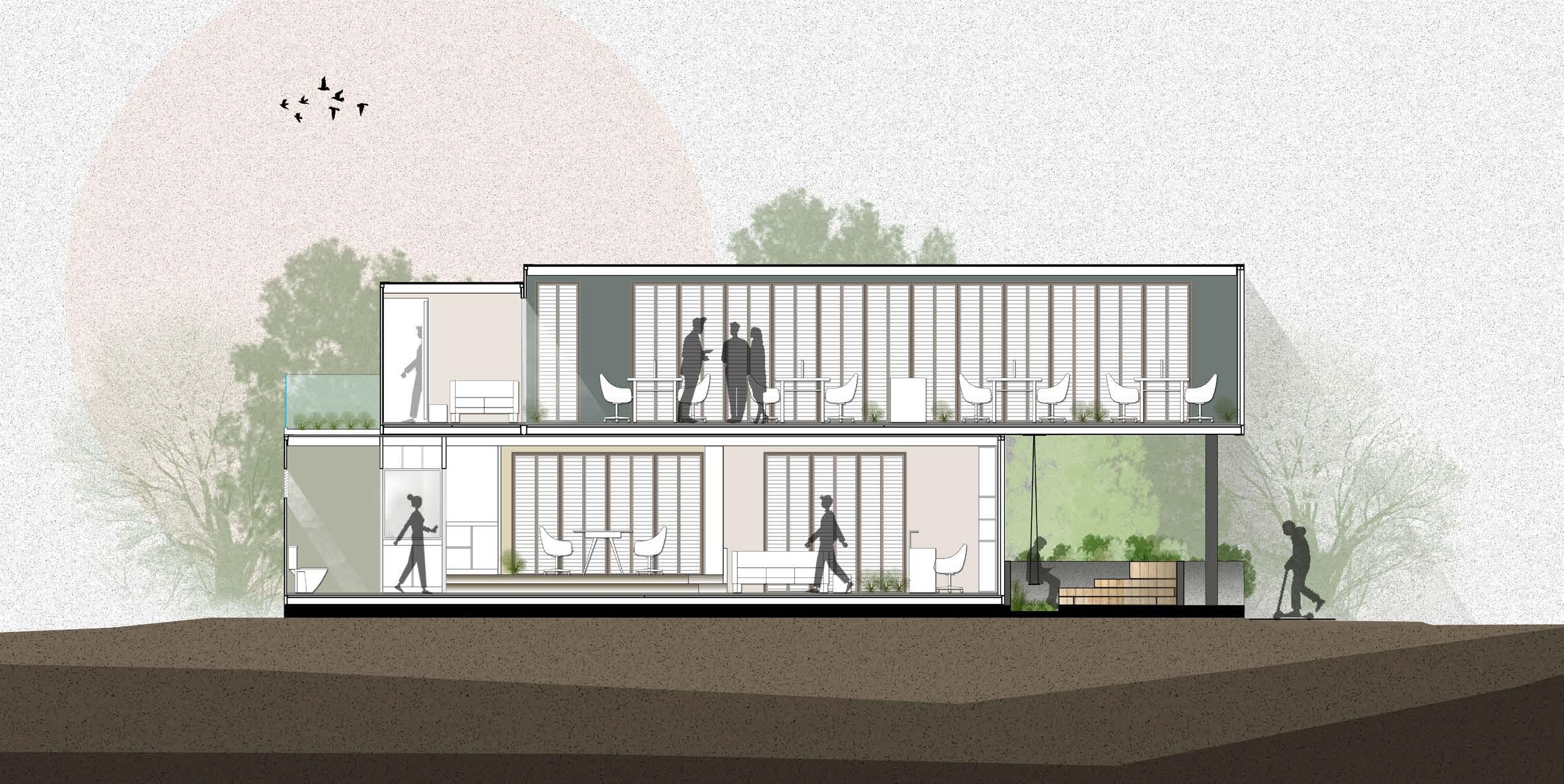 The concept is mainly to keep the ground floor space as accessible as possible to give building extroverted feeling. The first floor is focusing on views and vistas of the surrounding area where the main idea is to work with desired views. Some spaces of the working areas are kept introvert intentionally.