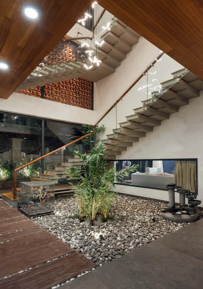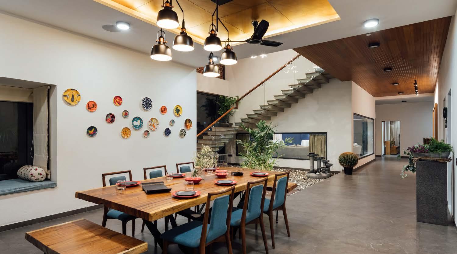 Well connected with nature, they insisted upon having open, yet private, spaces throughout the house and wanted to ensure a completely relaxing atmosphere for everyone who takes a step inside it. Lastly, building a structure that could withstand the dry and arid heat of Ahmedabad was also taken into consideration.