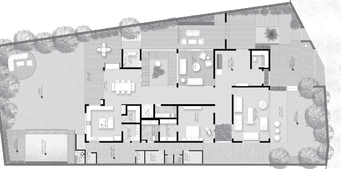 10 11 Ground Floor plan North Elevation East Elevation Dining area Interior spaces extending to nature