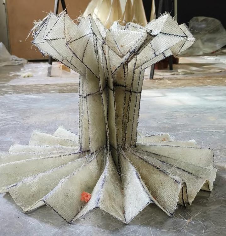 Different geometries were tried using origami as a method on a glass fibre sheet which was later covered with a couple layers of resin for the fibre to hold on to the folds.