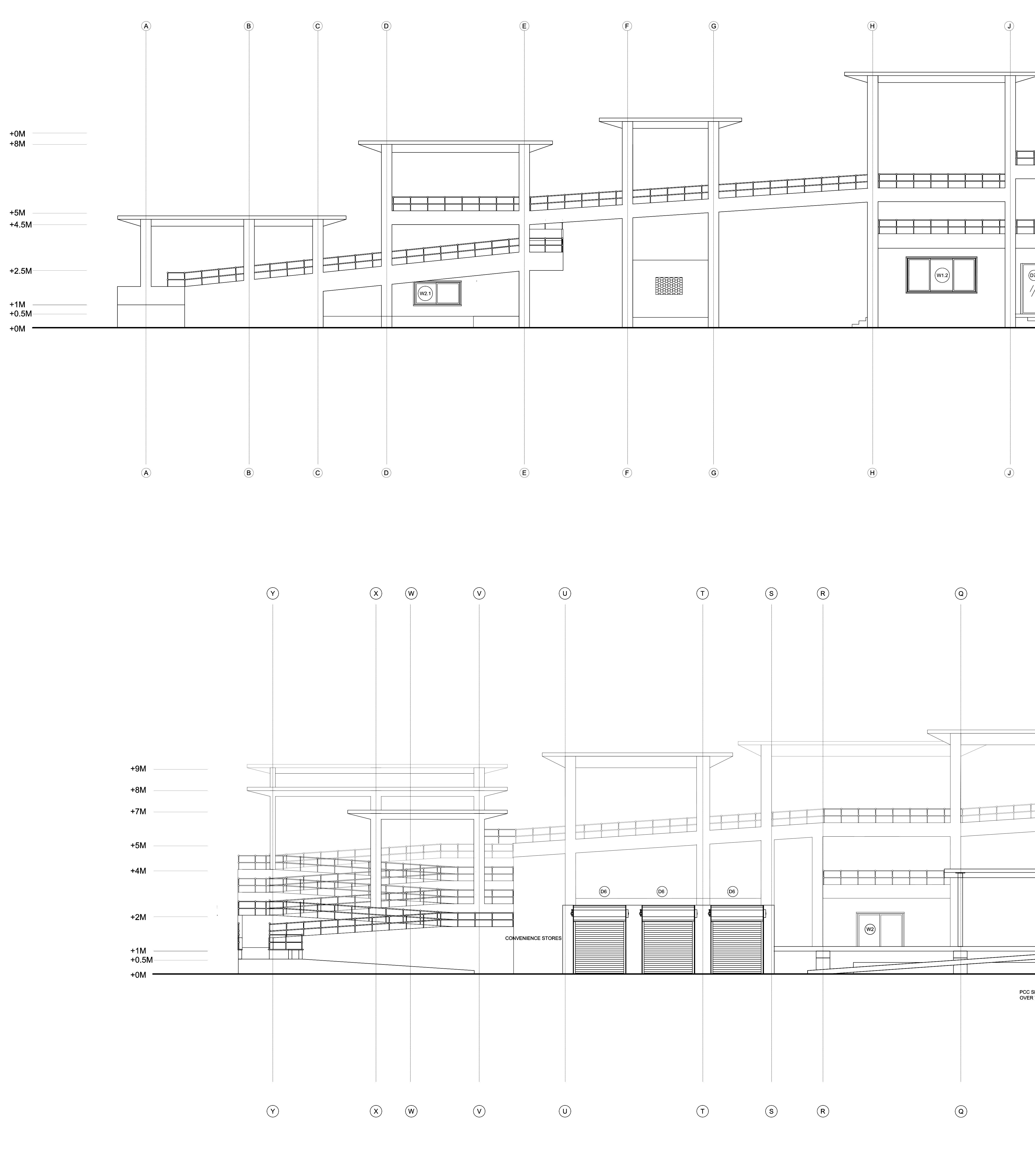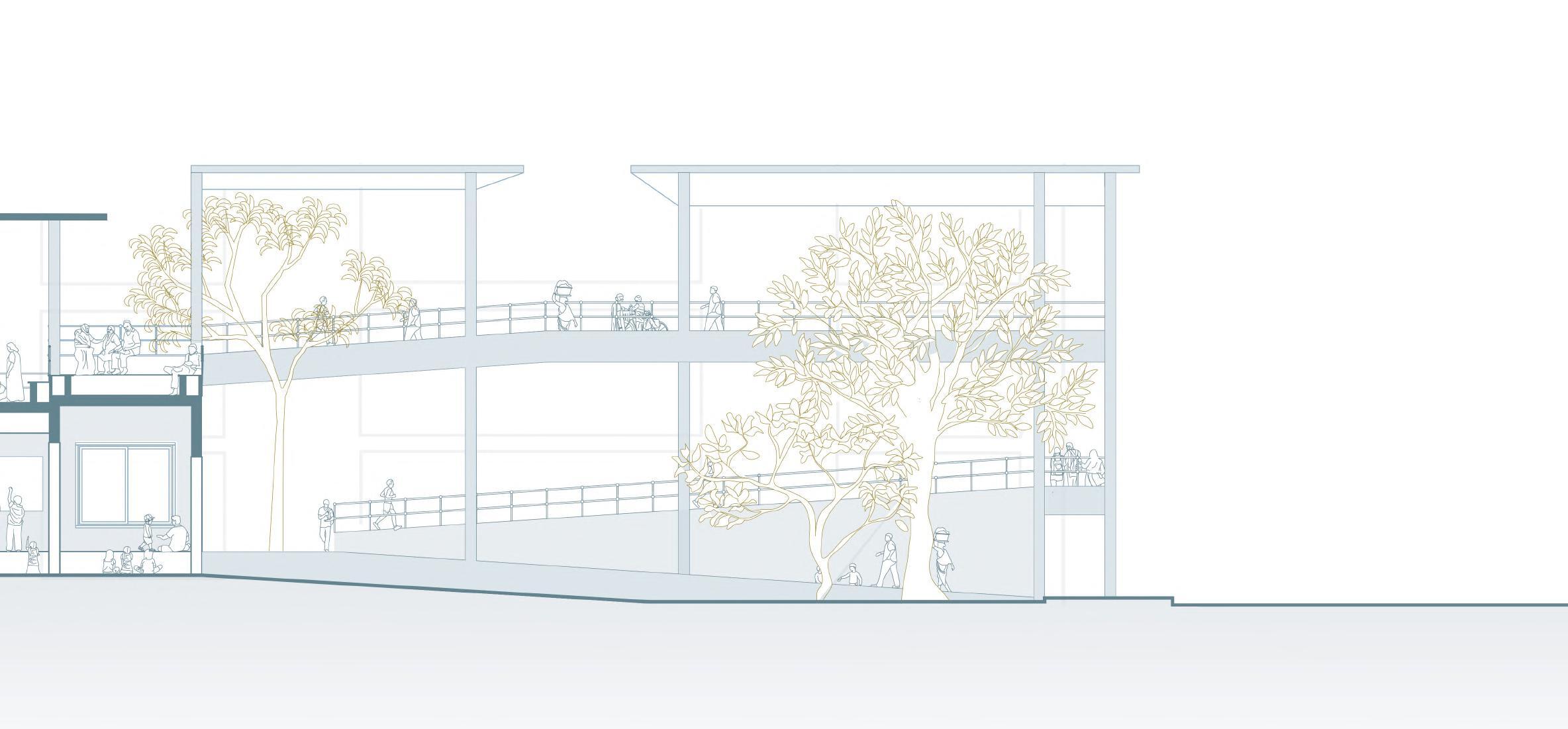 By using ramps, the sidewalk is woven into the site making it one enormous track that connects the entire design. The ramps then serves multifunctional purposes, transforming into terrace, hawking spaces, cycling/ jogging tracks, kid’s play area, nurseries and more. Acting as a focal point they offer moments of leisure amidst activities, pause points.