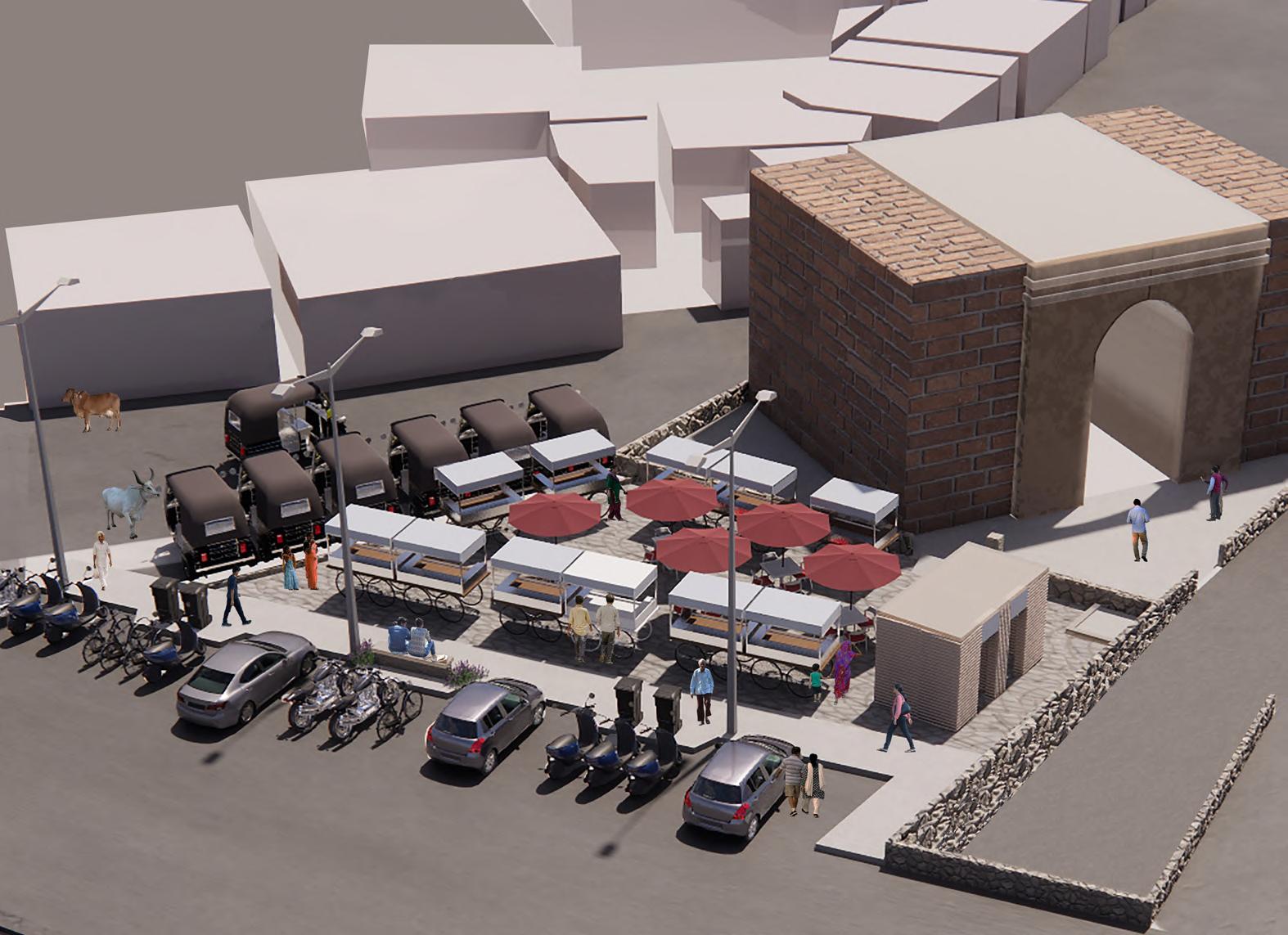 To also include a parking space for the rickshaws and utility areas such as toilets, waste disposal units and washing areas.