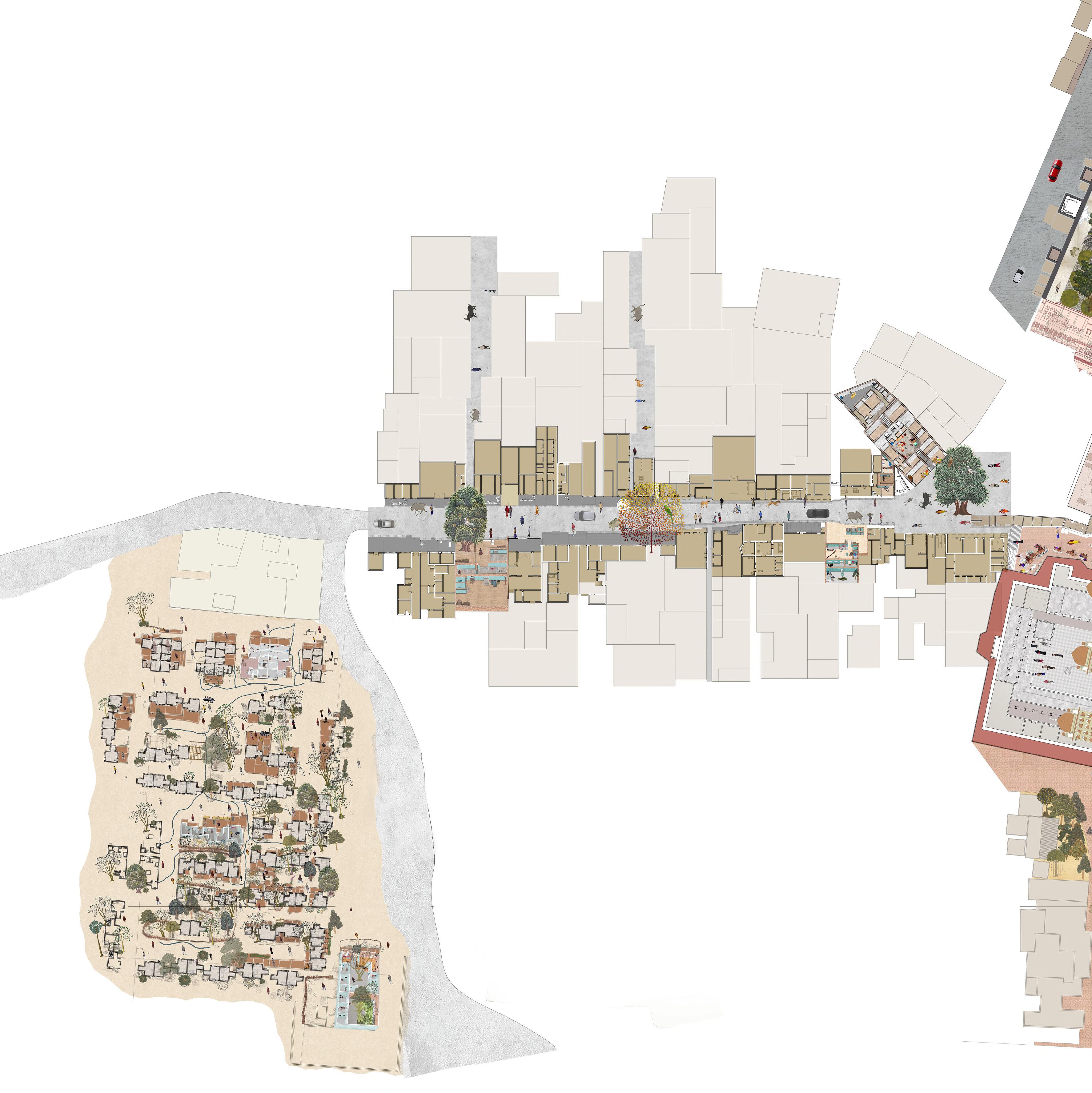 “Under the streets” is a project that re-imagines the concept of how a street is looked upon in a transit camp. This endeavor seeks to tranform traditional street dynamics and adapt them to unique oppurtunities provided within the context of the location by designing a community space.