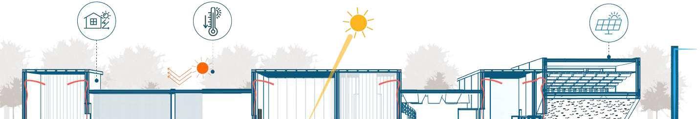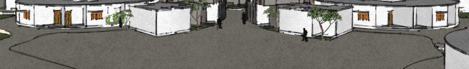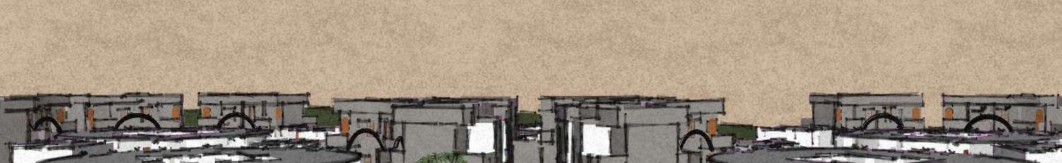 ToachievealayoutsimilartoIndianVillage,theconceptof“CloudCluster”emerged.These1BHKand 2BHK cluster combine to form a major cluster, which is then repeated multiple times to form a cloud cluster. These clusters are ßexible in design and have a scope for future incrementality. This site can accomodate upto 400 people including children.