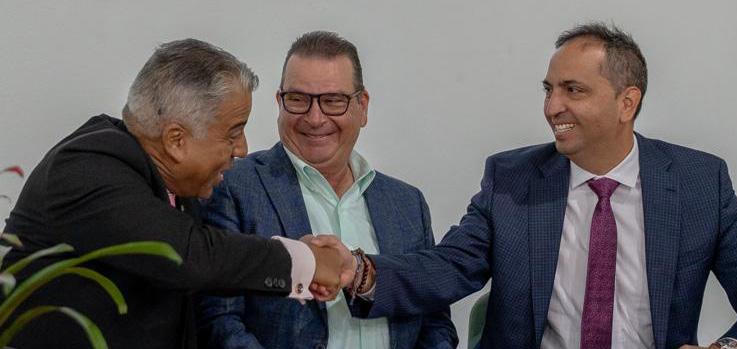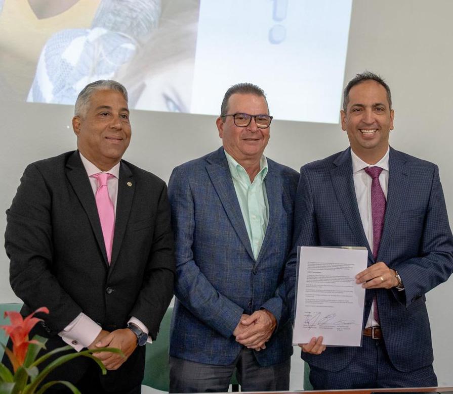 Diahuebs mainta durante un conferencia di prensa a firma un acuerdo di cooperacion (MOU) entre Ministerio di Turismo y Salud Publico, sr. Dangui Oduber conhunto cu e Director di Wit Gele Kruis (WGK) sr. Gino Goeloe, y Bestuursvoorzitter Dhr. Edwin Roos di Stichting Wit Gele Kruis. w