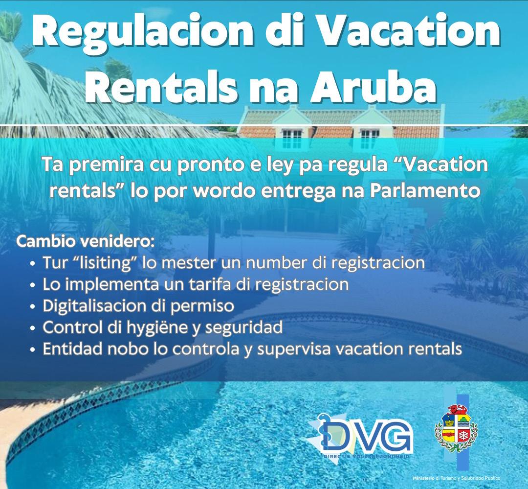 Vacation rentals ta un negoshi pa hopi di nos localnan y actualmente esaki no ta regula. Pa es motibo gobierno ta bay introduci un regulacion nobo unda lo tin cambio nan manera;