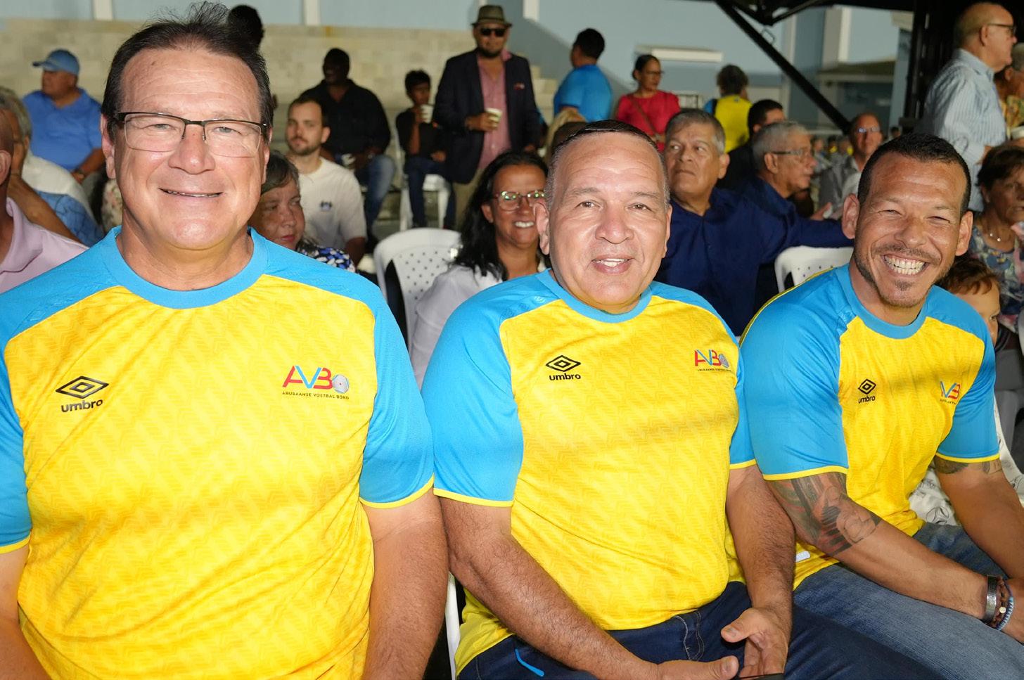 Diasabra, 8 di juni 2024, campeonato di FIFA World Cup Qualifiers a tuma luga den Compleho Deportivo Guillermo P. Trinidad na Dakota. Presente den e ocasion aki tabata Su Excelencia Gobernado di Aruba Alfonso Boekhoudt hunto cu Minister di Enseñansa y Deporte Endy Croes, colega Minister di Enseñansa, Ciencia, Cultura y Deporte di Corsou Sithree van Heydoorn, Minister Ruthmilda Larmonie di Corsou, Vice Prome Minister di Aruba Ursell Arends, Minister di Finansas y Cultura Xiomara Maduro, Minister di Turismo y Salubridad Dangui Oduber, Minister di Husticia y Asuntonan Social Rocco Tjon, Parlamentario Alvin Molina y Marco Berlis, director di Arubaanse Voetbal Bond (AVB) y demas invitadonan special.