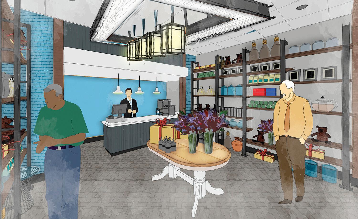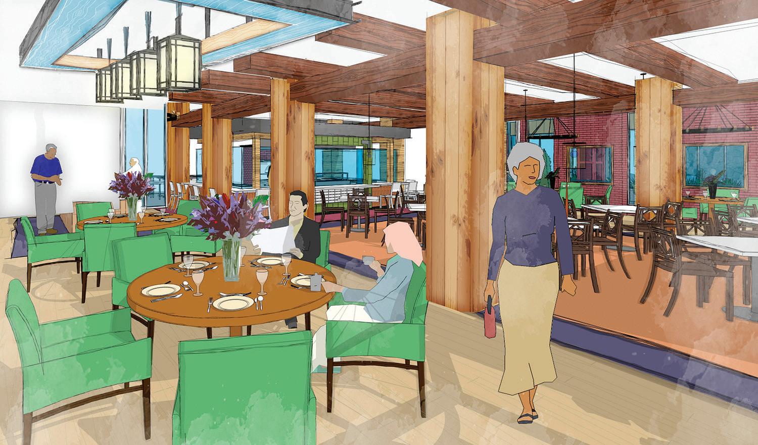 The Lodge at The Oaks is getting a brand new look! Renovations are underway and are expected to be completed by October 2025. So, residents and employees can look forward to updated and better spaces for dining, shopping, working and playing. The naming opportunities at the Lodge encompass these exciting improvements.