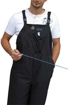 An amazing set of bib overalls that has everyone impressed! A special waterproof fabric that is machine washable and dryable. They stand up to everyday use without getting rips or snags. Several pockets for storage. Black.