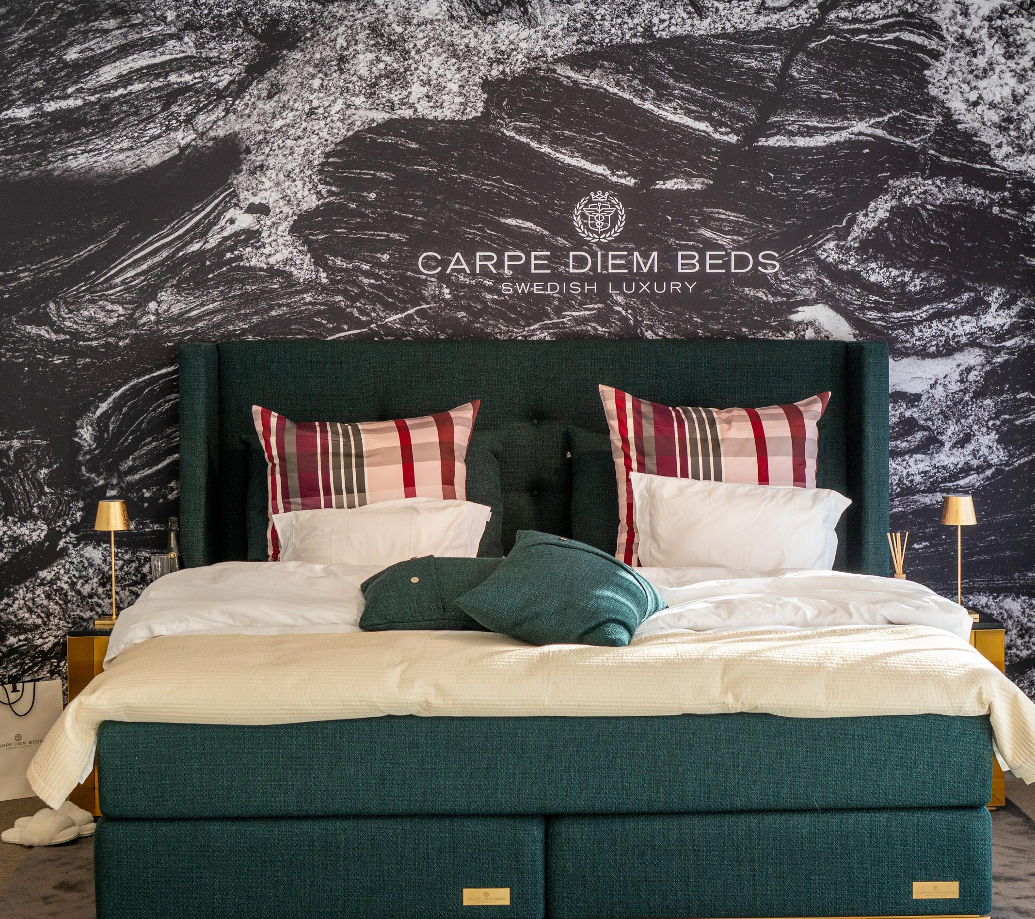 Carpe Diem er kendt for sine eksklusive materialer, gennemtænkte detaljer og sin filosofi om, at en seng skal støtte kroppen optimalt - både fysisk og mentalt. Hver seng