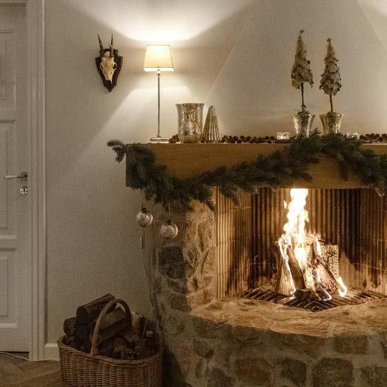 det om vinteren, stedet for alvor viser sin magi. Julen er højdepunktet - en tradition, som Inge og Per har gjort til deres egen. "Det bliver sådan lidt Peters Jul," siger Per grinende. "Du ved, den der stemning med mørke eftermiddage, lys i vinduerne og et træ, der næsten rører loftet i spisestuen."