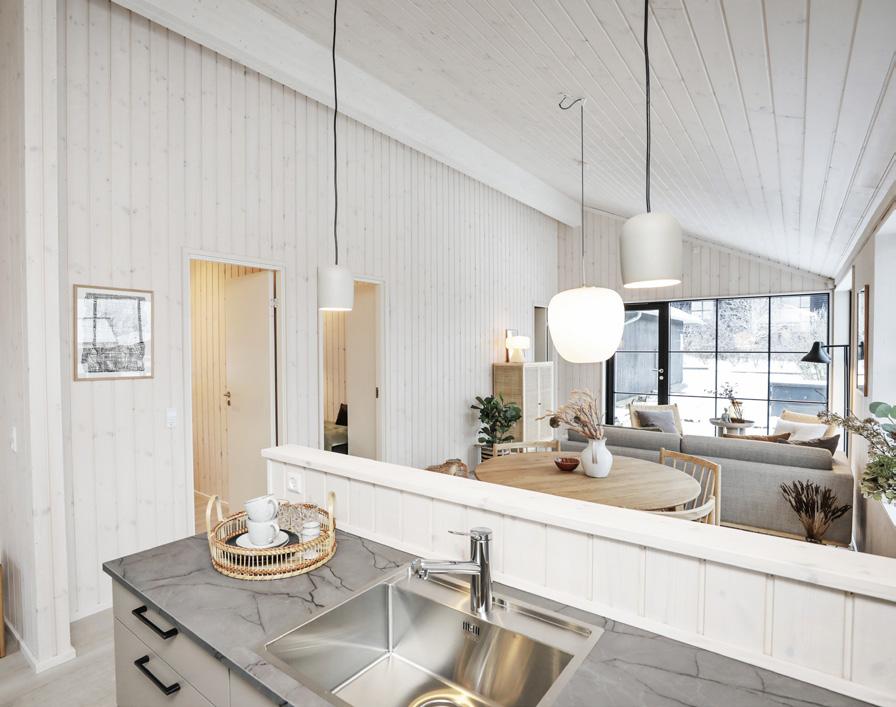 “Det kompakte fritidshus er enkelt og overskueligt. Vi har for eksempel et på 62 kvadratmeter med tre værelser og køkken-alrum i ét,” forklarer Dorte Keinicke. Her er fokus på at gøre det let at komme i gang. Husene kræver færre valg, og indretningen er tænkt, så man hurtigt kan tage huset i brug uden lange beslutningsprocesser.