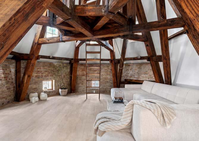 Etagen er et tidligere tørreloft bygget om i 2010 til en de mest spændende og sjælfulde lejligheder i København. Tårnets kuppeltag med guldbelagt vejrhane er netop skiftet, facaden renoveret i år, ligesom trappeopløb og porthus