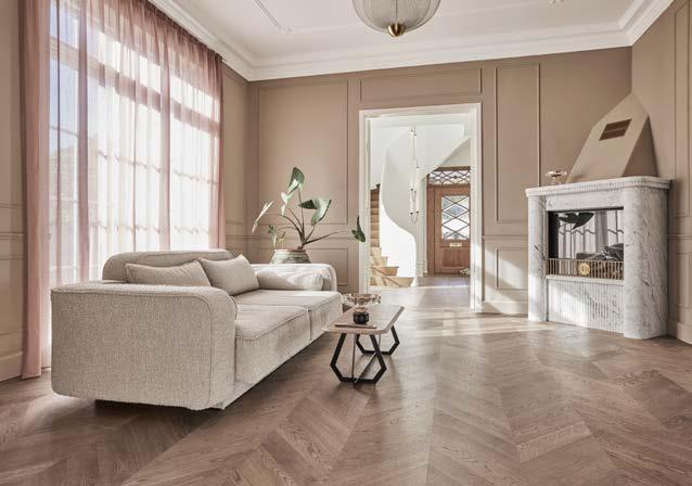frem. “Vi har arbejdet med lyse jordfarver, franske klinker og en belysning, der fremhæver de historiske detaljer i stedet for at skjule dem,” fortæller Jesper Stubgaard.