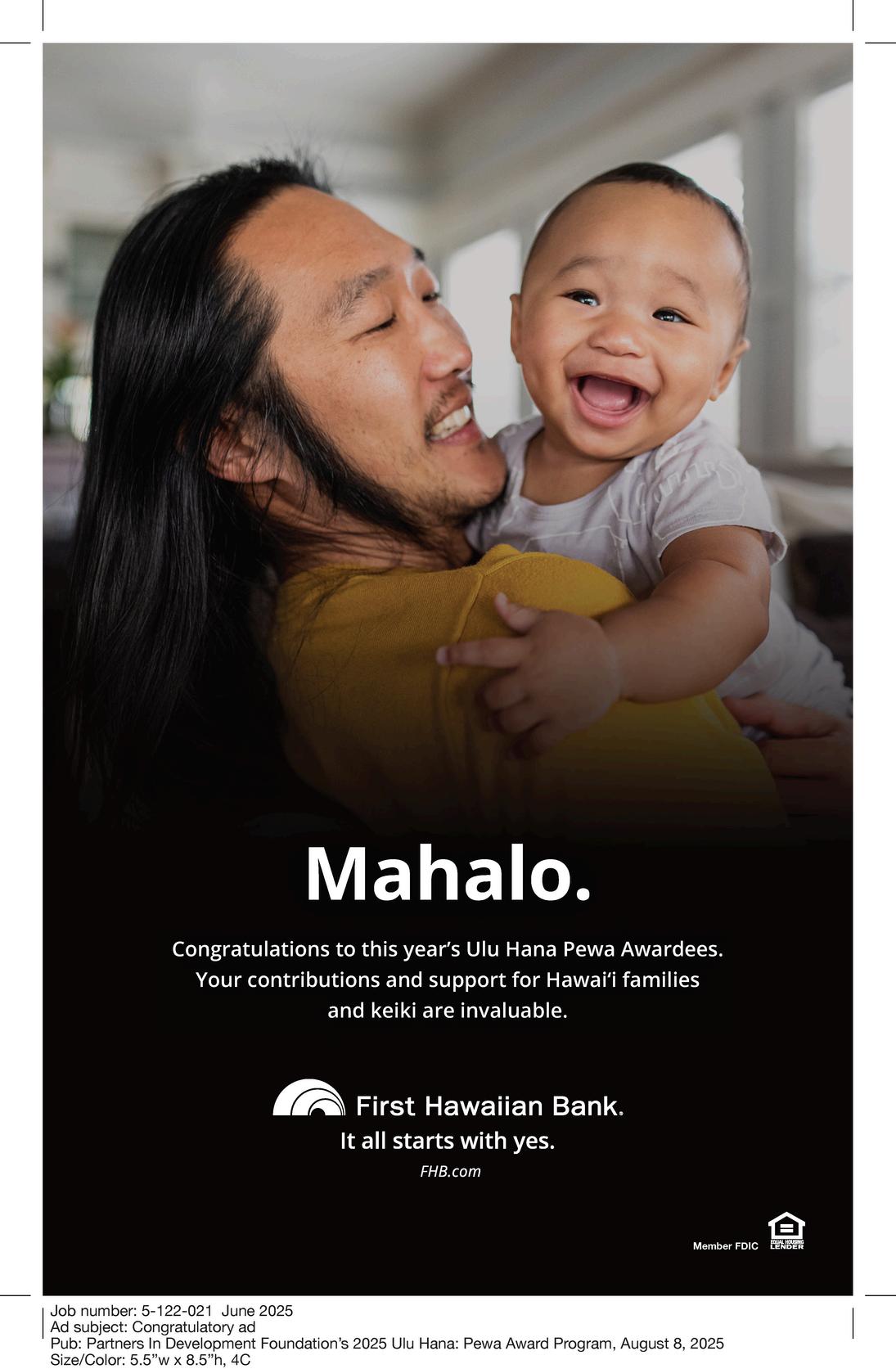 As we gather tonight, let us celebrate not only the accomplishments but the heart behind them. Let us honor the love, the labor, and the legacy of those who give so generously to uplift others. And let us recommit ourselves to this journey together toward a Hawaiʻi where every person has the opportunity to thrive.