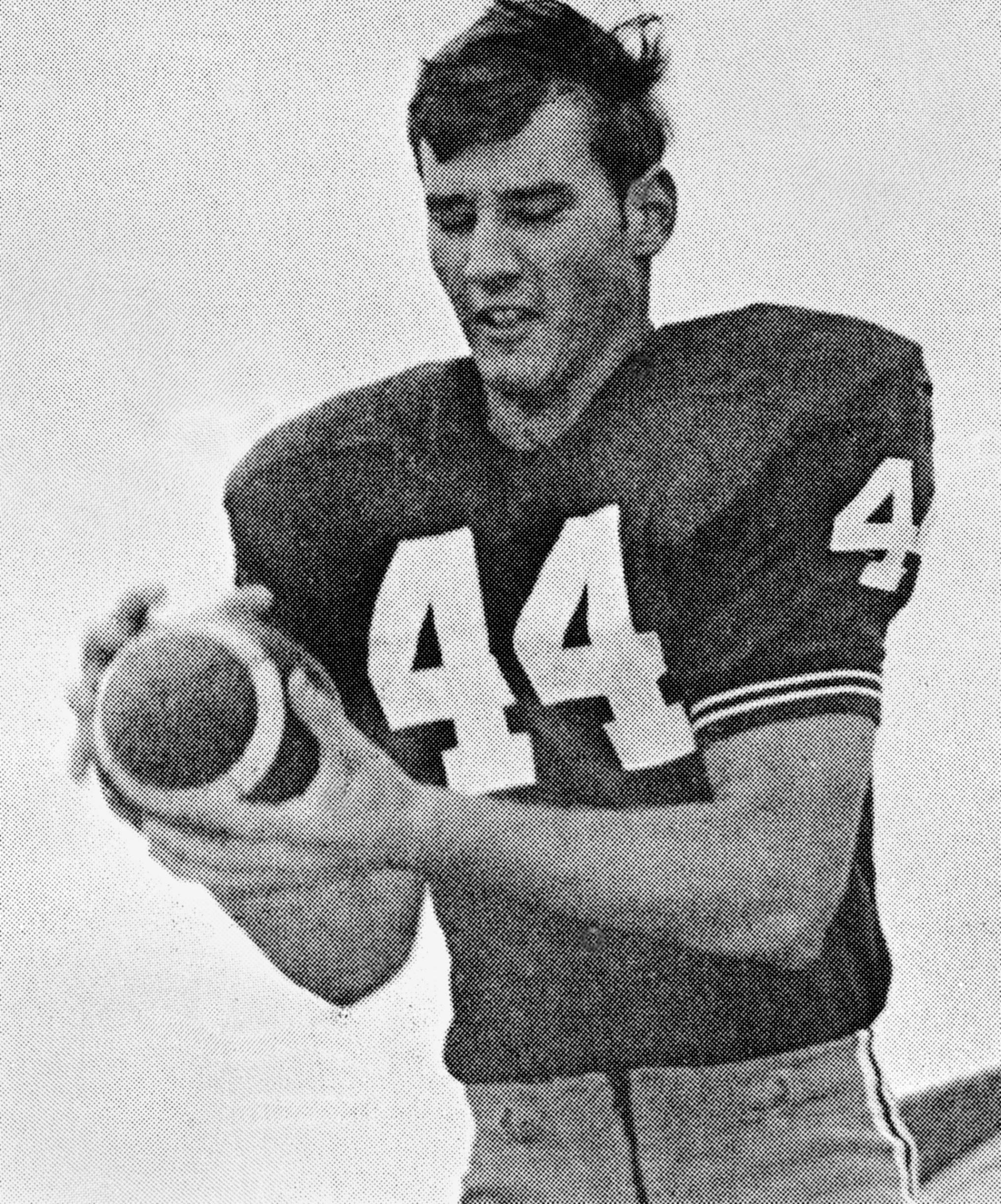 That season he caught 58 passes for school-record totals (since broken) of 927 yards and eight TDs. In one game alone, he caught 12 passes. And he averaged an amazing 102 receiving yards per game, a school record that still survives. As a junior in 1970, he posted a careerbest 189 yards in one game.