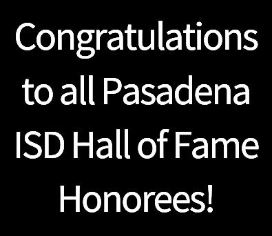 Thank you for joining us as we commemorate the outstanding achievements of this class of inductees to be forever celebrated at the Pasadena ISD Athletics Hall of Fame.